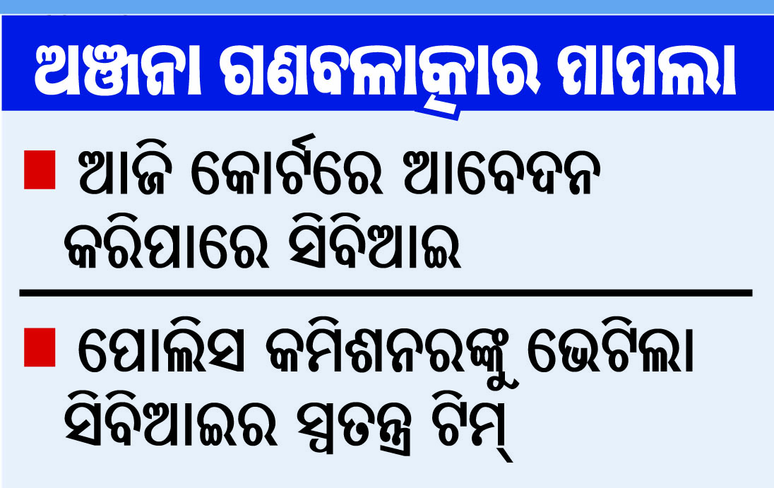 ଭୁବନେଶ୍ୱର,୨।୩(ବ୍ୟୁରୋ):ବହୁଚର୍ଚ୍ଚିତ ଅଞ୍ଜନା ମିଶ୍ର ଗଣବଳାତ୍କାର ମାମଲାରେ ଗିରଫ ହୋଇଥିବା ମୁଖ୍ୟ ଅଭିଯୁକ୍ତ ବିବନ ବିଶ୍ୱାଳକୁ ପଚରାଉଚରା କରିବ ସିବିଆଇ। ସୋମବାର ସିବିଆଇର ଏକ ଉଚ୍ଚସ୍ତରୀୟ ଟିମ୍ ପୋଲିସ କମିଶନର ଡ. ସୁଧାଂଶୁ ଷଡ଼ଙ୍ଗୀଙ୍କୁ ଭେଟି ଆଲୋଚନା କରିଛନ୍ତି। ଏହାସହ ଝାରପଡ଼ା ଜେଲରେ ବିବନଙ୍କ ଟି.ଆଇ ପରେଡ୍ କରାଯିବ ବୋଲି ଜଣାପଡ଼ିଛି। ଏନେଇ ମଙ୍ଗଳବାର କୋର୍ଟରେ ଆବେଦନ କରିବାକୁ ସିବିଆଇ ପ୍ରସ୍ତୁତି ଆରମ୍ଭ କରିଥିବା ସିବିଆଇର ଜଣେ ବରିଷ୍ଠ ଅଧିକାରୀ ସୂଚନା ଦେଇଛନ୍ତି।
