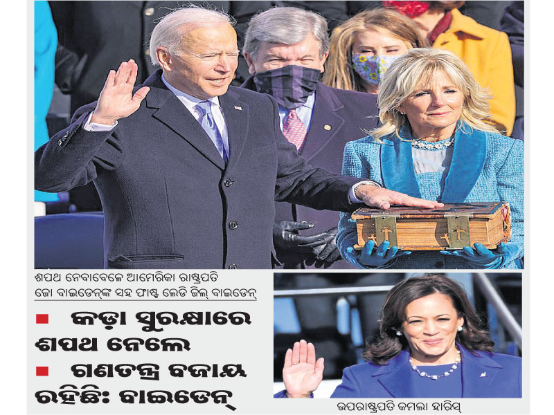ଆମେରିକା ଅନେକ ଥର ପରୀକ୍ଷାର ସମ୍ମୁଖୀନ ହୋଇଛି। ସବୁ ଚ୍ୟାଲେଞ୍ଜରେ ବିଜୟୀ ହୋଇଛି। ଆଜି ଆମେ ଜଣେ ପ୍ରାର୍ଥୀଙ୍କ ନୁହେଁ, ବରଂ ଗଣତନ୍ତ୍ରର ବିଜୟ ଉତ୍ସବ ମନାଉଛେ। ବାଇଡେନ୍ଙ୍କ ଶପଥ ପୂର୍ବରୁ ୫୬ ବର୍ଷୀୟା କମଲା ହାରିସ୍ ପ୍ରଥମ ଭାରତୀୟ ବଂଶୋଦ୍ଭବ, କୃଷ୍ଣକାୟ ଓ ମହିଳା ଉପରାଷ୍ଟ୍ରପତି ରୂପେ ଶପଥ ନେଇଥିଲେ। ସୁପ୍ରିମକୋର୍ଟର ପ୍ରଥମ ଲାଟିନା ସଦସ୍ୟା ବିଚାରପତି ସୋନିଆ ସୋଟୋମେୟର ତାଙ୍କୁ ଶପଥ ପାଠ କରାଇଥିଲେ। ହାରିସ୍ ଦୁଇଟି ବାଇବେଲ ଧରି ଶପଥ ନେଇଥିଲେ। ଗୋଟିଏ ଘନିଷ୍ଠ ପାରିବାରିକ ବନ୍ଧୁ ରେଜିନା ଶେଲ୍ଟନଙ୍କର ହୋଇଥିବାବେଳେ ଅନ୍ୟଟି ସୁପ୍ରିମକୋର୍ଟର ପ୍ରଥମ ଆଫ୍ରିକୀୟ-ଆମେରିକୀୟ ବିଚାରପତିଙ୍କର।