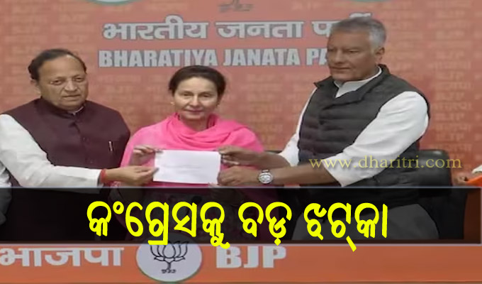 ନୂଆଦିଲ୍ଲୀ,୧୪।୩: ଲୋକ ସଭା ନିର୍ବାଚନକୁ ନେଇ ରାଜନୀତି ଜୋର ଧରିଥିବାବେଳେ ପଞ୍ଜାବରେ କଂଗ୍ରେସ ଏକ ବଡ଼ ଝଟ୍କା ଲାଗିଛି। କ୍ୟାପଟେନ ଅମରିନ୍ଦର ସିଂଙ୍କ ସ୍ତ୍ରୀ ତଥା ଏମ୍ପି ପ୍ରୀତି କୌର ଭାଜପାରେ ଯୋଗ ଦେଇଛନ୍ତି। ଏହାପୂର୍ବରୁ ପ୍ରୀତିର ଭାରତୀୟ ଜାତୀୟ କଂଗ୍ରେସର ପ୍ରାଥମିକ ସଦସ୍ୟତାରୁ ଇସ୍ତଫା ଦେଇଥିଲେ। ସେବେଠାରୁ ସେ ଖୁବ ଶୀଘ୍ର ଭାଜପାରେ ଯୋଗ ଦେଇପାରନ୍ତି ବୋଲି ଅନୁମାନ କରାଯାଉଥିଲା।