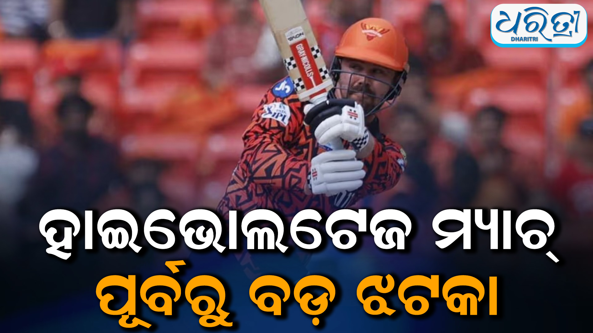 ହାଇଦ୍ରାବାଦ,୧୦।୫: ହାଇଭୋଲଟେଜ ମ୍ୟାଚ ପୂର୍ବରୁ ହାଇଦ୍ରାବାଦକୁ ଲାଗିଛି ଏକ ବଡ଼ ଝଟକା । ହାଇଦ୍ରାବାଦର ବିସ୍ଫୋରକ ବ୍ୟାଟର ଟ୍ରାଭିସ ହେଡ କରୋନାରେ ସଂକ୍ରମିତ ହୋଇଛନ୍ତି। ଏନେଇ ସେ ସୋମବାର ମ୍ୟାଚ ଖେଳିପାରିବେ ନାହିଁ ବୋଲି ହାଇଦ୍ରାବାଦ ଦଳର ମୁଖ୍ୟ ପ୍ରଶିକ୍ଷକ ଡାନିଏଲ ଭିଟୋରି କହିଛନ୍ତି। ହେଡ କରୋନା ପଜିଟିଭ ହୋଇଛନ୍ତି, ଏନେଇ ସେ ଭାରତ ଆସିପାରି ନାହାନ୍ତି। ଦଳ ପକ୍ଷରୁ ଆଶା କରାଯାଉଛି ଯେ, ସେ ସମ୍ପୂର୍ଣ୍ଣ ସୁସ୍ଥ ହୋଇ ପରବର୍ତ୍ତୀ ମ୍ୟାଚ୍ରେ ଦଳରେ ଯୋଗଦେବେ।