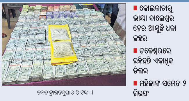 ପିଙ୍କି ଓ ଶମ୍ଭୁନାଥ କେଶୁରା ଅଞ୍ଚଳରେ ଘର ଭଡ଼ା ନେଇ ଦୀର୍ଘଦିନ ଧରି ରହିବା ସହ ସେଠାରେ ବ୍ରାଉନ୍ସୁଗାର ବେପାର କରୁଥିଲେ। ଅଭିଯୁକ୍ତ ମଣ୍ଟୁ ଜଳେଶ୍ୱରର ବ୍ୟବସାୟୀଙ୍କଠାରୁ ବ୍ରାଉନ୍ସୁଗାର ଆଣି ଉକ୍ତ ଦମ୍ପତିଙ୍କୁ ଯୋଗାଉଥିଲେ। ସେମାନେ ଭୁବନେଶ୍ୱର ବସ୍ତି ଅଞ୍ଚଳରେ ବ୍ରାଉନ୍ସୁଗାର ବ୍ୟବସାୟୀଙ୍କୁ ଛୋଟ ଛୋଟ ପ୍ୟାକେଟ୍ କରି ବିକୁଥିଲେ। ତେବେ ପୋଲିସ ଚଢ଼ାଉ ସମୟରେ ଅଭିଯୁକ୍ତମାନେ ଘରେ ଷ୍ଟକ୍ ରଖିଥିବା ବ୍ରାଉନ୍ସୁଗାରକୁ ପାଇଖାନାରେ ଢାଳିବା ସହ ପୋଡ଼ି ନଷ୍ଟ କରିବାକୁ ଚେଷ୍ଟା କରିଥିଲେ। ତେବେ ପୋଲିସ କବାଟ ଭାଙ୍ଗି ପଶିଯିବା ସହ ସେସବୁକୁ ଜବତ କରିଥିଲା ବୋଲି ପୋଲିସ କମିଶନର ସୌମେନ୍ଦ୍ର ପ୍ରିୟଦର୍ଶୀ ଖବରଦାତା ସମ୍ମିଳନୀରେ ସୂଚନା ଦେଇଛନ୍ତି। ସେ କହିଛନ୍ତି, ରାଜଧାନୀରୁ ବ୍ରାଉନସୁଗାର ସହ ଏତେ ପରିମାଣର ଟଙ୍କା ମିଳିବା ଅଭୂତପୂର୍ବ। ଏହା ପଛରେ କିଛି ବଡ଼ ଆପରାଧିକ ଷଡ଼ଯନ୍ତ୍ର ଥିବା ସନ୍ଦେହ କରାଯାଉଛି। ଫେରାର ଅଭିଯୁକ୍ତଙ୍କୁ ଧରିବା ପାଇଁ ଉଦ୍ୟମ ଚାଲିଛି। ଏତେ ଟଙ୍କା କେଉଁଠାରୁ ଆସିଛି ତାହାର ମଧ୍ୟ ତଦନ୍ତ କରାଯିବ। କୋଲକାତାରୁ ଜଳେଶ୍ୱର ଦେଇ କଟକ-ଭୁବନେଶ୍ୱରକୁ ବିପୁଳ ପରିମାଣର ବ୍ରାଉନସୁଗାର ଆସୁଛି। ଗତ ୪ମାସ ମଧ୍ୟରେ କମିଶନରେଟ୍ ପୋଲିସ ଦ୍ୱୈତ ନଗରୀରୁ ୫ କିଗ୍ରା ୧୦୦ଗ୍ରାମ ବ୍ରାଉନସୁଗାର ଜବତ କରିଥିବା ସେ କହିଛନ୍ତି।