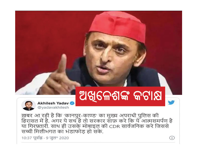 ଲକ୍ଷ୍ନୌ, ୯।୭: କାନପୁରରେ ୮ ଜଣ ପୋଲିସଙ୍କୁ ହତ୍ୟା କରିଥିବା ଅପରାଧୀ ବିକାଶ ଦୁବେଙ୍କୁ ଗୁରୁବାର ଗିରଫ କରାଯାଇଛି। ଏନେଇ ଉତ୍ତରପ୍ରଦେଶ ପୂର୍ବତନ ମୁଖ୍ୟମନ୍ତ୍ରୀ ଅଖିଳେଶ ଯାଦବ ସରକାରଙ୍କୁ ଘେରିଛନ୍ତି। ସେ କଟାକ୍ଷ କରି କହିଛନ୍ତି ଯେ, ବିକାଶ ଦୁବେ ଗିରଫ ହୋଇଛନ୍ତି ନା ଆତ୍ମସମର୍ପଣ କରିଛନ୍ତି ତାହା ମୁଖ୍ୟମନ୍ତ୍ରୀ ଯୋଗୀ ଆଦିତ୍ୟନାଥ ସରକାର ସ୍ପଷ୍ଟ କରନ୍ତୁ ବୋଲି ସେ ଦାବି କରିଛନ୍ତି। ଏହା ସହିତ ବିକାଶଙ୍କ ମୋବାଇଲ୍ର ସିଡିଆର୍କୁ ପ୍ରକାଶ କରିବାକୁ ସେ କହିଛନ୍ତି। ଅଖିଳେଶ ଟୁଇଟ୍ କରି ଏଭଳି କହିଛନ୍ତି। ଏବେ ଅଖିଳେଶଙ୍କ ଟୁଇଟ୍ ନେଇ ସୋସିଆଲ୍ ମିଡ଼ିଆରେ ଚର୍ଚ୍ଚା ଆରମ୍ଭ ହୋଇଛି।