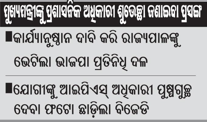 ଭୁବନେଶ୍ୱର, ୩୦।୩(ବ୍ୟୁରୋ) ଶାସନ ବ୍ୟବସ୍ଥାରେ କାର୍ଯ୍ୟପାଳିକାକୁ ଲୋକଙ୍କ ସେବା ପାଇଁ ବିଶେଷ ଅଧିକାର ଦିଆଯାଇଛି। ସେଥିପାଇଁ ସେମାନଙ୍କଠାରୁ ନିରପେକ୍ଷତା ଆଶା କରାଯାଏ। ସେମାନଙ୍କ ନିରପେକ୍ଷତା ହିଁ ଗଣତନ୍ତ୍ରକୁ ସୁଦୃଢ କରେ। ରାଜ୍ୟରେ ଶାସକ ବିଜେଡି ଏବଂ ପ୍ରଶାସନିକ ବ୍ୟବସ୍ଥା ଭିତରେ ଥିବା ମଧୁଚନ୍ଦ୍ରିକା ଏବେ ପଦାରେ ପଡିଛି ବୋଲି ଭାଜପା ଅଭିଯୋଗ କରିଛି। ଏହାସହ ଭାଜପାର ଏକ ପ୍ରତିନିଧି ଦଳ ମଙ୍ଗଳବାର ରାଜ୍ୟପାଳ ପ୍ରଫେସର ଗଣେଶୀ ଲାଲ୍ଙ୍କୁ ଭେଟି ଏହି ପ୍ରସଙ୍ଗରେ ବିସ୍ତୃତ ଆଲୋଚନା କରି ମୁଖ୍ୟମନ୍ତ୍ରୀଙ୍କୁ ଭେଟିଥିବା ପ୍ରଶାସନିକ ଅଧିକାରୀ ଏବଂ ବିଭିନ୍ନ ସରକାରୀ କର୍ମଚାରୀ ସଙ୍ଗଠନ ବିରୋଧରେ କାର୍ଯ୍ୟାନୁଷ୍ଠାନ ଲାଗି ଦାବିପତ୍ର ପ୍ରଦାନ କରିଛିି। ଅନ୍ୟପଟେ ବିଜେଡି ପକ୍ଷରୁ ଉତ୍ତର ପ୍ରଦେଶ ମୁଖ୍ୟମନ୍ତ୍ରୀ ଯୋଗୀ ଆଦିତ୍ୟନାଥଙ୍କୁ ଭେଟି ଏକ ଫୁଲତୋଡ଼ା ଦେଇ ସ୍ବାଗତ ଜଣାଉଥିବା ଆଇପିଏସ୍ ଅଧିକାରୀଙ୍କ ଫଟୋ ଦେଖାଇ ପାଲଟା ଟାର୍ଗେଟ କରାଯାଇଛି। ଏହା ଭାଜପାର ଦୋମୁହାଁ ନୀତି ବୋଲି ବିଜେଡି ଅଭିଯୋଗ କରି କହିଛି।