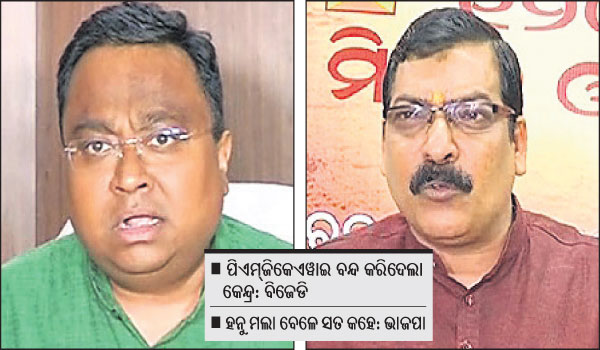 ଭୁବନେଶ୍ବର,୭ା୧(ବ୍ୟୁରୋ): ମାଗଣା ଚାଉଳକୁ ନେଇ ବିଜେଡି, ଭାଜପା ଭିତରେ ମୁହଁାମୁହିଁ ପରିସ୍ଥିତି ଜାରି ରହିଛି। କରୋନା ସମୟରୁ ଆରମ୍ଭ ହୋଇଥିବା ପ୍ରଧାନମନ୍ତ୍ରୀ ଗରିବ କଲ୍ୟାଣ ଅନ୍ନ ଯୋଜନା (ପିଏମ୍ଜିକେଏୱାଇ)ବନ୍ଦ ହୋଇଯାଇଛି। ଫଳରେ ଓଡ଼ିଶାର ୩ କୋଟି ୨୫ ଲକ୍ଷ ଲୋକ ୧୦ କେଜି ଲେଖାଏ ଚାଉଳ ପାଉଥିବା ବେଳେ ଏବେ ସେଥିରୁ ବଞ୍ଚିତ ହେବେ ବୋଲି ବିଜେଡି କହିଛି। ଏଥିସହ ରାଜ୍ୟ ସରକାରଙ୍କ ବିନା ସହଭାଗିତାରେ କେନ୍ଦ୍ର ସରକାର ମାଗଣା ଚାଉଳ ଦେବାକୁ ଘୋଷଣା କରିବା ପରେ ବିଜେଡି ପକ୍ଷରୁ ଏହାକୁ ଟାର୍ଗେଟ କରାଯାଇଛି। ଅପରପକ୍ଷେ କେନ୍ଦ୍ର ସରକାରଙ୍କ ନୂଆ ଘୋଷଣା ଅନୁଯାୟୀ ହିତାଧିକାରୀ ବର୍ଷକ ପର୍ଯ୍ୟନ୍ତ ମାସିକ ମୁଣ୍ଡ ପିଛା ୫ କେଜି ଲେଖାଏଁ ଚାଉଳ ସମ୍ପୂର୍ଣ୍ଣ ମାଗଣାରେ ପାଇବେ।