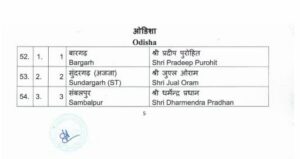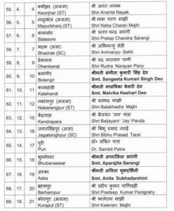 ତେବେ ଏଥର ତାଲିକାରେ ଓଡ଼ିଶାରୁ ୧୮ ଜଣ ପ୍ରାର୍ଥୀଙ୍କ ନାମ ରହିଛି। ଏମାନଙ୍କ ମଧ୍ୟରେ ଭୁବନେଶ୍ୱରରୁ ଅପରାଜିତା ଷଡଙ୍ଗୀ, ପୁରୀରୁ ସମ୍ବିତ ପାତ୍ର, ସମ୍ବଲପୁରରୁ ଧର୍ମେନ୍ଦ୍ର ପ୍ରଧାନ ରହିଛନ୍ତି।