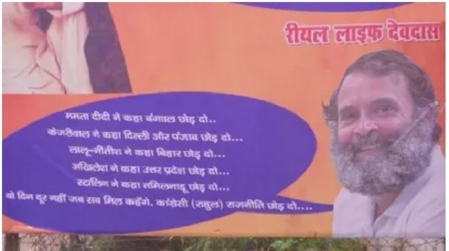 ସୂଚନାଯୋଗ୍ୟ, ବିରୋଧି ଦଳର ବୈଠକ ପୂର୍ବରୁ ଭାଜପା କାର୍ଯ୍ୟାଳୟ ବାହାରେ ରାହୁଲ ଗାନ୍ଧୀଙ୍କ ପୋଷ୍ଟର ଲଗାଯାଇଥିଲା। ଯେଉଁଥିରେ ଭାଜପା ନେତା କଂଗ୍ରେସ ନେତା ରାହୁଲ ଗାନ୍ଧୀଙ୍କ ତୁଳନା ଫିଲ୍ମ ସହ କରି ରାହୁଲଙ୍କୁ ରିୟଲ ଲାଇଫ ଦେବଦାସ ବୋଲି କହିଛି।