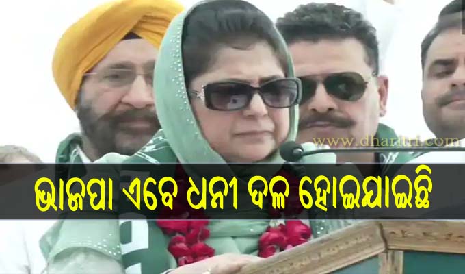 ଶ୍ରୀନଗର,୯।୧୦: ପିଡିପି ମୁଖ୍ୟ ମେହବୁବା ମୁଫତି ରବିବାର ଜମ୍ମୁର ଗାନ୍ଧିନଗରରେ ଥିବା ପାର୍ଟି କାର୍ଯ୍ୟାଳୟ ବାହାରେ କାର୍ଯ୍ୟକର୍ତ୍ତାଙ୍କୁ ସମ୍ବୋଧିତ କରିଛନ୍ତି। ଏହି ସମୟରେ ସେ ଭାଜପାକୁ ଟାର୍ଗେଟ କରିଥିଲେ। ସେ କହିଛନ୍ତି, ଆଜି ଭାଜପା ଦଳ ଦୁନିଆର ସବୁଠାରୁ ଧନୀ ଦଳ ହୋଇପାରିଛି। ଭାଜପା ସେମାନଙ୍କ ବଡ଼ ବଡ଼ ସାଙ୍ଗମାନଙ୍କ ଋଣ ଛାଡ କରିବାକୁ ଏକ କମିଶନ ପାଆନ୍ତି, ସେଥିପାଇଁ ୨୦୧୪ ପୂର୍ବରୁ ୧୦୦ ଟଙ୍କା ମୂଲ୍ୟର ଗାମୁଛା ପିନ୍ଧୁଥିବା ଏହି ଦଳର ନେତାମାନେ ଆଜି ୮୦,୦୦୦ ଟଙ୍କାର ଏକ ଗାମୁଛା ପିନ୍ଧୁଛନ୍ତି। ଯେଉଁମାନେ ପୂର୍ବରୁ ୫୦୦୦ ଟଙ୍କିଆ ଚଷମା ପିନ୍ଧୁଥିଲେ ସେମାନେ ଆଜି ୧.୫ ଲକ୍ଷ ଚଷମା ପିନ୍ଧି ବୁଲୁଛନ୍ତି। ଯେତେବେଳେ ବି ଭାଜପା କୌଣସି ରାଜ୍ୟ ସରକାରକୁ ହଟାଇବାକୁ ଚାହିଁବ, ସେତେବେଳେ ଇଡି, ସିବିଆଇ, ଏନଆଇଏ, ଏସିବି ସହାୟତା ନିଏ। ଇଡି, ସିବିଆଇ, ଏନଆଇଏ, ଏସିବି ସବୁ ଯେଉଁଠି ବିଫଳ ହୁଏ, ସେତେବେଳେ ସେଠାରେ ଟଙ୍କା କାମ କରେ।