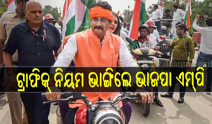 ନୂଆଦିଲ୍ଲୀ,୪।୮: ଭାରତୀୟ ଜନତା ପାର୍ଟି (ଭାଜପା) ଏମ୍ପି ମନୋଜ ତିୱାରୀ ଟ୍ରାଫିକ ନିୟମ ଭାଙ୍ଗିବା ମହଙ୍ଗା ପଡିଛି। ବିନା ହେଲମେଟରେ ବାଇକ ଚଳାଇବା ସମେତ ଅନ୍ୟ କେତେକ ନିୟମକୁ ଭାଙ୍ଗିବା ଅପରାଧରେ ଦିଲ୍ଲୀ ପୋଲିସ ତାଙ୍କ ନାଁରେ ୪୧ ହଜାର ଟଙ୍କା ଚାଲାଣ କାଟିଛି। ଏଥିମଧ୍ୟରେ ମନୋଜ ତିୱାରୀଙ୍କୁ ୨୧ ହଜାର ଟଙ୍କା ଏବଂ ଗାଡି ମାଲିକଙ୍କୁ ୨୦ ହଜାର ଟଙ୍କା ଜୋରିମନା କରାଯାଇଛି।