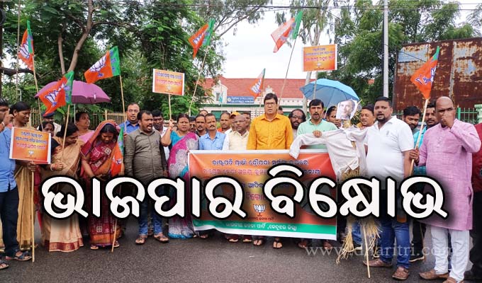କେନ୍ଦୁଝର,୧୪ା୭: ପ୍ରଧାନମନ୍ତ୍ରୀ ନରେନ୍ଦ୍ର ମୋଦି ଓଡ଼ିଶାରୁ ଜଣେ ଆଦିବାସୀ ମହିଳାଙ୍କୁ ଦେଶର ସର୍ବୋଚ୍ଚ ସାମ୍ବିଧାନିକ ପଦବୀ ଏନ୍ଡିଏର ରାଷ୍ଟ୍ରପତି ପ୍ରାର୍ଥୀ କରିଥିବାରୁ କଂଗ୍ରେସ ପକ୍ଷରୁ ଜାତୀୟ ମୁଖପାତ୍ର ଅଜୟ କୁମାର ବିବାଦୀୟ ମନ୍ତବ୍ୟ ଦେବା ପ୍ରତିବାଦରେ ଗୁରୁବାର ଭାଜପା ପକ୍ଷରୁ ଜିଲା ସଭାପତି ଅଂଶୁମାନ ସବୁଜ ମହାନ୍ତ ବର୍ମା ବିକ୍ଷୋଭ ପ୍ରଦର୍ଶନ କରିବା ସହ ରାଜୀବ ଗାନ୍ଧୀଙ୍କ କୁଶପୁତ୍ତଳିକା ଦାହ କରିଛନ୍ତି। ରାଷ୍ଟ୍ରପତି ପ୍ରାର୍ଥୀ ଦୌପଦୀ ମୁର୍ମୁଙ୍କୁ ଅପମାନିତ ମନ୍ତବ୍ୟ ଦେଇଥିବାରୁ ଘୋର ନିନ୍ଦା କରିବା ସହ ଏହାକୁ ଭର୍ତ୍ସନା କରିଛନ୍ତି।