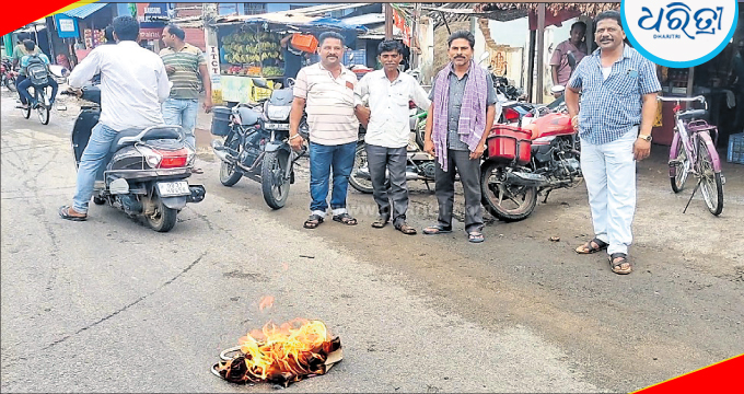 ବାଉଁଶୁଣୀ,୧୬ା୬(ଦେବାଶିଷ ନେପାକ)ବୌଦ୍ଧ ଜିଲା ବାଉଁଶୁଣୀ ଛକ ନିକଟରେ ଶନିବାର ୫- ଟି ଆମ ଓ ନବୀନ ଓଡ଼ିଶା ବ୍ୟାଗ୍‌କୁ ଭାଜପା କର୍ମୀ ପୋଡ଼ୁଥିବା ଦେଖିବାକୁ ମିଳିଛି। ସ୍ଥାନୀୟ ଅଞ୍ଚଳର ଭାଜପା ନେତା ପୁରନ୍ଦର ବକ୍ସିଙ୍କ ନେତୃତ୍ୱରେ ପୂର୍ଣ୍ଣଚନ୍ଦ୍ର ମେହେର, କିଶୋର ମେହେର, ଚୈତନ୍ୟ ମେହେର, ଗୋପାଳ ମେହେର ପ୍ରମୁଖଙ୍କ ଉପସ୍ଥିତିରେ ବାଉଁଶୁଣୀ ଛକ ଜାତୀୟ ରାଜପଥ ଉପରେ ବ୍ୟାଗ୍‌ ପୋଡିଥିଲେ l