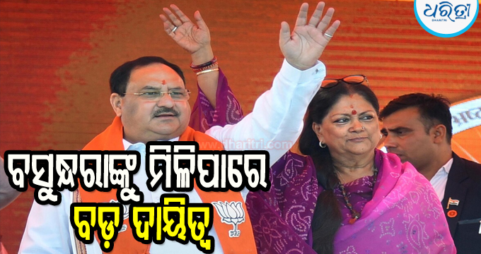 ନୂଆଦିଲ୍ଲୀ,୨୮।୯: ପୁଣି ଥରେ ଭାଜପା ଏକ ବଡ ମାଷ୍ଟରଷ୍ଟ୍ରୋକ ଖେଳିବାକୁ ଯାଉଛି। ଏକ ଜାତୀୟ ଗଣମାଧ୍ୟମ ରିପୋର୍ଟନୁସାରେ ଦଳର ହାଇକମାଣ୍ଡ ରାଜସ୍ଥାନର ପୂର୍ବତନ ମୁଖ୍ୟମନ୍ତ୍ରୀ ତଥା ରାଷ୍ଟ୍ରୀୟ ଉପସଭାପତି ବସୁନ୍ଧରା ରାଜେଙ୍କୁ ରାଷ୍ଟ୍ରୀୟ ଅଧ୍ୟକ୍ଷ କରିପାରନ୍ତି।