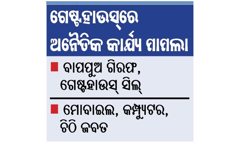 ଢେଙ୍କାନାଳ ଅଫିସ, ୩।୮: ଢେଙ୍କାନାଳ ପୌରାଞ୍ଚଳର ୧୫ନଂ. ଓ୍ବାର୍ଡରେ ଥିବା ଏକ ଗେଷ୍ଟହାଉସ୍ରେ ଅନୈତିକ କାର୍ଯ୍ୟ ହେଉଥିବା ମାମଲାରେ ପୋଲିସକୁ ବହୁ ଗୁରୁତ୍ୱପୂର୍ଣ୍ଣ ତଥ୍ୟ ମିଳିଛି। ବାହାରୁ ଯୁବତୀଙ୍କୁ ଆଣି ଗେଷ୍ଟହାଉସ୍ରେ ରଖି ଦେହ ବ୍ୟବସାୟ କରାଯାଉଥିଲା। ଗେଷ୍ଟ ହାଉସ୍ ମାଲିକଙ୍କ ପୁଅ ଜଣେ ନାବାଳିକାଙ୍କୁ ପ୍ରେମ ନିବେଦନ କରି ବ୍ଲାକମେଲିଂ କରୁଥିଲେ। ଖୋଳତାଡ଼ରୁ ଏପରି ସଙ୍ଗିନ ତଥ୍ୟ ପଦାକୁ ଆସିବା ପରେ ଗେଷ୍ଟହାଉସ୍ ମାଲିକ ବିଶ୍ୱଜିତ ମିଶ୍ର ଓରଫ ଢେଗା (୫୫) ଏବଂ ତାଙ୍କ ପୁଅ ନିଶାନ୍ତ ମିଶ୍ର (୨୦)ଙ୍କୁ ରବିବାର ପୋଲିସ ଗିରଫ କରିଛି। ଗେଷ୍ଟହାଉସକୁ ସିଲ୍ କରାଯାଇଛି। ଘଟଣାସ୍ଥଳରୁ ମୋବାଇଲ, କମ୍ପ୍ୟୁଟର ଏବଂ ଏକ ଚିଠି ଜବତ କରାଯାଇଛି। ଉକ୍ତ ଚିଠି ନାବାଳିକାଙ୍କ ଉଦ୍ଦେଶ୍ୟରେ ଲେଖାଯାଇଥିଲା। ପ୍ରେମ ନ କଲେ ଆତ୍ମହତ୍ୟା କରିବେ ବୋଲି ଅଭିଯୁକ୍ତ ଯୁବକ ଜଣକ ଏଥିରେ ଉଲ୍ଲେଖ କରିଥିବା ପୋଲିସ କହିଛି।