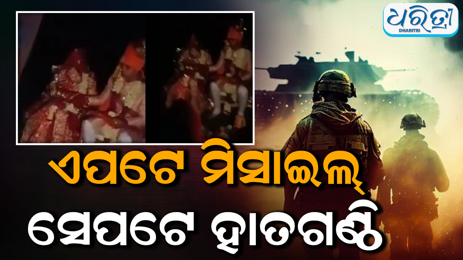 ଏଭଳି ଏକ ଘଟଣା ଦେଖିବାକୁ ମିଳିଛି ରାଜସ୍ଥାନ ଯୋଧପୁରରେ । ବିବାହ ଚାଲୁଥିବା ସମୟରେ ହଠାତ୍ ଆରମ୍ଭ ହୋଇଥିଲା ଯୁଦ୍ଧ ପରିସ୍ଥିତି । ଜମ୍ମୁର ଏୟାରପୋର୍ଟ ଉପରେ ଆକ୍ରମଣ କରିବାକୁ ଚେଷ୍ଟା କରିଥିଲା ପାକିସ୍ତାନ। ଏହା ପରେ ରାଜସ୍ଥାନକୁ ବ୍ଲାକ ଆଉଟ ପାଇଁ ନିର୍ଦ୍ଦେଶ ଆସିଥିଲା। ପରେ ସବୁ ଆଡେ କେବଳ କିଟିମିଟି ଅନ୍ଧାର। ଏହା ମଧ୍ୟରେ ଏହି ନବ ଦମ୍ପତି ବିବାହ ବନ୍ଧନରେ ବାନ୍ଧି ହୋଇଛନ୍ତି । ବ୍ଲାକ ଆଉଟ ବେଳେ କନିଆ ମଥାରେ ସିନ୍ଦୂର ଦେଇଛନ୍ତି ବର ।