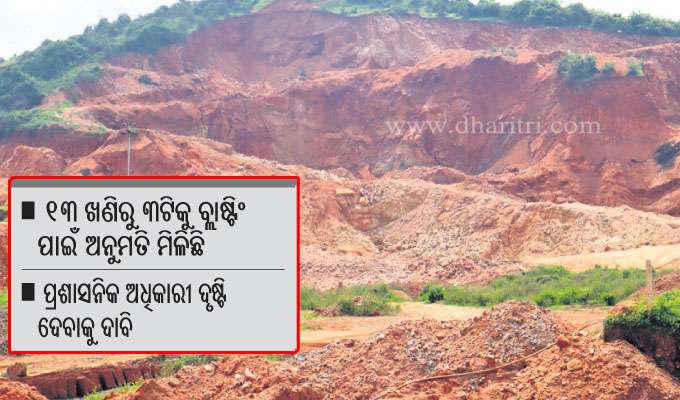 ଖୋର୍ଦ୍ଧା ଅଫିସ,୧ା୫: ଖୋର୍ଦ୍ଧା ଜିଲାରେ ବେଆଇନ ଭାବେ ପଥର ଖନନ ଓ ମାଙ୍କଡ଼ା ପଥର ଚାଲାଣ ବଢିବାରେ ଲାଗିଛି। ପ୍ରଶାସନ ପକ୍ଷରୁ କେତେକ ପଥର ଖଣିକୁ ବ୍ଲାଷ୍ଟିଂ ଅନୁମତି ମିଳିନାହିଁ। ଏହାସତ୍ତ୍ୱେ କିପରି ବ୍ଲାଷ୍ଟିଂ ଚାଲିଛି ତାହାକୁ ନେଇ ପ୍ରଶ୍ନବାଚୀ ସୃଷ୍ଟି ହୋଇଛି। ସୂଚନା ଅନୁଯାୟୀ, ଗତ ଏପ୍ରିଲ ପହିଲାରୁ ଏପର୍ଯ୍ୟନ୍ତ ୧୩ଟି ଖଣି ମଧ୍ୟରୁ କେବଳ ୩ଟିକୁ ବ୍ଲାଷ୍ଟିଂ ଅନୁମତି ମିଳିଛି। ଶ୍ରୀମନ୍ଦିର ପ୍ରଶାସନ ପକ୍ଷରୁ ଥିବା ଖଣିରୁ ଚୋରା ଚାଲାଣ ଚାଲିଛି। ମୋଟା ଅଙ୍କ ନେଇ ବେଆଇନ ଭାବେ ପ୍ରୋତ୍ସାହନ ଦିଆଯାଉଥିବା ସାଧାରଣରେ ଅଭିଯୋଗ ହେଉଛି।