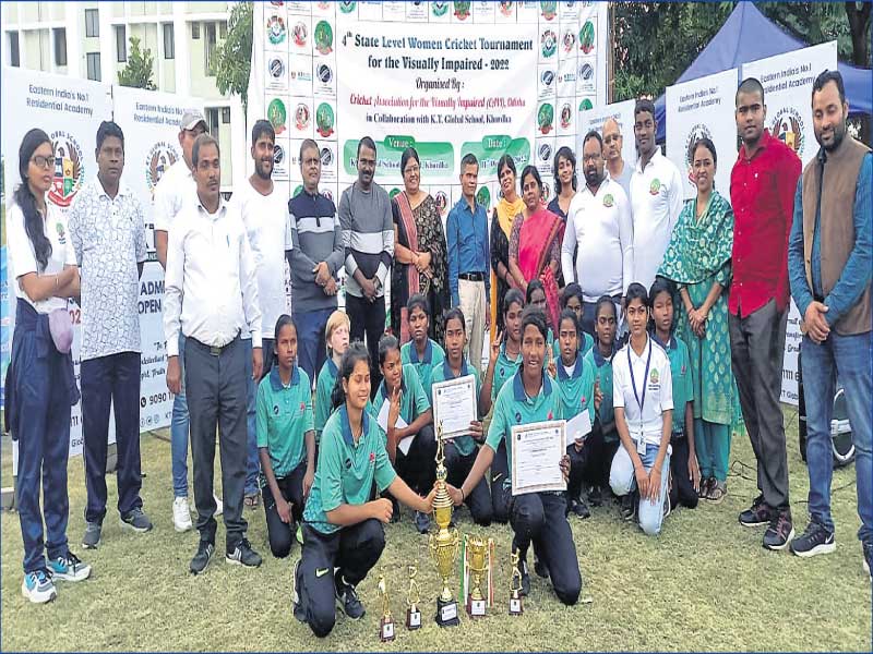 ଭୁବନେଶ୍ୱର,୧୨ା୧୨(ସ୍ପୋଟର୍ସ ବ୍ୟୁରୋ): କେଟି ଗ୍ଲୋବାଲ ସ୍କୁଲ ପଡ଼ିଆ ଠାରେ କାଭି ଓଡ଼ିଶା ଓ କେଟି ଗ୍ଲୋବାଲ ସ୍କୁଲର ମିଳିତ ଆନୁକୂଲ୍ୟରେ ଏବଂ ରାଜ୍ୟ ସାମାଜିକ ସୁରକ୍ଷା ଓ ଭିନ୍ନକ୍ଷମ ସଶକ୍ତୀକରଣ ବିଭାଗ ସହଯୋଗରେ ଦୁଇଦିନିଆ ରାଜ୍ୟ ଦୃଷ୍ଟିବାଧିତ ମହିଳା କ୍ରିକେଟ ଟୁର୍ନାମେଣ୍ଟ ଉଦ୍ଯାପିତ ହୋଇଛି। ରମାଦେବୀ ମହିଳା ବିଶ୍ୱବିଦ୍ୟାଳୟକୁ ପରାସ୍ତ କରି ଚାମ୍ପିୟନ ଆଖ୍ୟା ଅର୍ଜନ କରିଛି ବାଲେଶ୍ୱର। ବାଲେଶ୍ବର ଦଳ ପ୍ରଥମ ସେମିଫାଇନାଲରେ ଲୁଇସ୍ ବ୍ରେଲ୍କୁ ଏବଂ ରମାଦେବୀ ମହିଳା ବିଶ୍ୱବିଦ୍ୟାଳୟ ଦ୍ୱିତୀୟ ସେମିଫାଇନାଲରେ ଭଦ୍ରକକୁ ହରାଇ ଫାଇନାଲରେ ପ୍ରବେଶ କରିଥିଲେ। ରମାଦେବୀ ମହିଳା ବିଶ୍ୱବିଦ୍ୟାଳୟକୁ ୧୧ ରନ୍ରେ ପରାସ୍ତ କରି ବାଲେଶ୍ବର ଚାମ୍ପିୟନ୍ ହୋଇଥିଲା। ବାଲେଶ୍ୱର ପ୍ରଥମେ ବ୍ୟାଟିଂ କରି ନିର୍ଦ୍ଧାରିତ ୧୦ ଓଭରରେ କୌଣସି ଉଇକେଟ ନ ହରାଇ ୭୦ ରନ୍ କରିଥିଲା। ଫୁଲ ସୋରେନ୍ ୪୧ ଏବଂ ପାର୍ବତୀ ମାର୍ଡି ୨୩ ରନ୍ କରିଥିଲେ। ଜବାବରେ ରମାଦେବୀ ୧୦ ଓଭରରେ ୨ଟି ଉଇକେଟ ହରାଇ ୫୯ ରନ୍ କରିବାକୁ ସକ୍ଷମ ହୋଇଥିଲା।