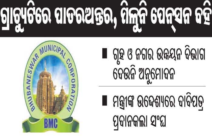 ସେହିପରି ଅବସରପ୍ରାପ୍ତ ବିଏମ୍‌ସି କର୍ମଚାରୀଙ୍କୁ ପେନ୍‌ସନ୍‌ ବହି ମିଳୁନାହିଁ। ଫଳରେ ସେମାନଙ୍କୁ କେଉଁଠାରୁ ଋଣ ମିଳିପାରୁନାହିଁ। ରାଜ୍ୟର ଏତେବଡ଼ ପୌର ସଂସ୍ଥାରେ କାମ କରି ଏଭଳି ସମସ୍ୟା ଦେଇ ଗତି କରିବା ନିହାତି ପକ୍ଷେ ଲଜ୍ଜାର ବିଷୟ ବୋଲି ସଂଘ ସମ୍ପାଦକ ବ୍ରଜ ପଣ୍ଡା କହିଛନ୍ତି। ରାଜ୍ୟ ସରକାରଙ୍କ ଓଡ଼ିଶା ସିଭିଲ ସର୍ଭିସ ଆକ୍ଟ ୨୦୧୬ ସେକ୍ସନ ୧୮ ଅନୁଯାୟୀ, ମ୍ୟୁନିସିପାଲ କର୍ମଚାରୀମାନେ ସରକାରୀ କର୍ମଚାରୀଙ୍କ ପରି ସମସ୍ତ ସୁବିଧା ପାଇବେ। ମାତ୍ର ପୌର କର୍ମଚାରୀଙ୍କ କ୍ଷେତ୍ରରେ ଗ୍ରାଚ୍ୟୁଇଟି ୮ଲକ୍ଷ ଟଙ୍କା ପ୍ରଦାନ କରାଯିବ ବୋଲି ୨୦୨୦ ଜାନୁୟାରୀ ୧୬ରେ ନଗର ଉନ୍ନୟନ ବିଭାଗର ରେଜୁଲେଶନ ନଂ. ୧୪୧୪ରେ ପ୍ରକାଶ ପାଇଥିଲା। ଏହାକୁ ପୌର କର୍ମଚାରୀ ବିରୋଧ କରିବା ସହ ଏହାର ସଂଶୋଧନ ଦାବି କରୁଥିବାବେଳେ ଏନେଇ କୌଣସି ସମାଧାନ ବାହାରି ପାରୁନାହିଁ। ଦାବି ସମ୍ପର୍କରେ ବିଏମ୍‌ସି ବିଭାଗୀୟ ଅଧିକାରୀଙ୍କଠାରୁ ଆରମ୍ଭ କରି ମେୟର ପର୍ଯ୍ୟନ୍ତ ସମସ୍ତଙ୍କର ଦୃଷ୍ଟି ଆକର୍ଷଣ କରାଯାଇଛି। ଗୋଟେପଟେ ନଗର ଉନ୍ନୟନ ବିଭାଗ ହାତ ବାନ୍ଧି ବସିଥିବାବେଳେ ବିଏମ୍‌ସି ଅଧିକାରୀ ଚିଠି କରିଦେଇ ନିଜ ମୁଣ୍ଡରୁ ଦୋଷ ଖସାଇ ଦେଉଥିବା ସଂଘ ସମ୍ପାଦକ ପଣ୍ଡା କ୍ଷୋଭର ସହ କହିଛନ୍ତି।