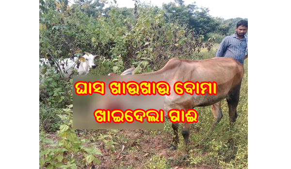 ଗଞ୍ଜାମ,୧୦।୧୧(ଡି.ଏନ୍.ଏ.): ବାର୍ହା ଶିକାର ପାଇଁ ଖଞ୍ଜା ଯାଇଥିବା ଏକ ବୋମାକୁ ଏକ ଗାଈ ଖାଇଦେବାରୁ ଗୁରୁତର ଆହତ ହୋଇଥିବା ଜଣାପଡିଛି। ଏହି ଘଟଣାଟି ଘଟିଛି ଗଞ୍ଜାମ ବ୍ଲକର କାଠଗଡା଼ ଅଞ୍ଚଳରେ।