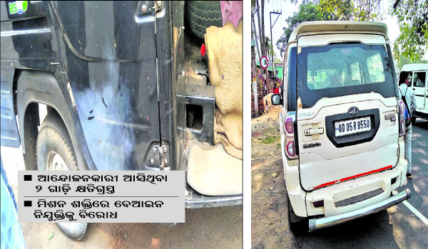 ତିଗିରିଆ,୪। ୩(ଡି. ଏନ. ଏ. ): ତିଗିରିଆ ବ୍ଲକର ବିଭିନ୍ନ ପଞ୍ଚାୟତରେ ମହିଳା ଗୋଷ୍ଠୀ କର୍ମକର୍ତ୍ତା ନିଯୁକ୍ତିରେ ଅନିୟମିତତା ହୋଇଥିବା ଅଭିଯୋଗ କରି ଶୁକ୍ରବାର ବ୍ଲକ କାର୍ଯ୍ୟାଳୟ ଘେରାଉ କରାଯାଇଥିଲା। ଆନ୍ଦୋଳନକାରୀମାନେ ଯେଉଁ ଗାଡ଼ିରେ ଆସିଥିଲେ ତା’ଉପରକୁ ବୋମାମାଡ଼ ହୋଇଥିବା ଅଭିଯୋଗ ହୋଇଛି। ଏନେଇ ତିଗିରିଆ ଥାନାରେ ମାମଲା (ନଂ. ୪୩/୨୩) ରୁଜୁ ହୋଇଛି। ତିଗିରିଆ ବ୍ଲକର ବିଭିନ୍ନ ପଞ୍ଚାୟତର ମିଶନ ଶକ୍ତି ଅଧୀନରେ ନିର୍ବାଚିତ ଲୋକ ପ୍ରତିନିଧିମାନଙ୍କୁ ବେଆଇନ ଭାବେ ନିଯୁକ୍ତି ଦିଆଯାଇଥିବା ଅଭିଯୋଗ କରି ଅପରାହ୍ନରେ ବହୁ ମହିଳା ଓ ପୁରୁଷ ବ୍ଲକ କାର୍ଯ୍ୟାଳୟ ସମ୍ମୁଖରେ ପହଞ୍ଚତ୍ ବିକ୍ଷୋଭ ପ୍ରଦର୍ଶନ କରିଥିଲେ। ଆଠଗଡ଼ର ବିଜେଡିର ଯୁବ ସଙ୍ଗଠକ ଅଭୟ ବାରିକ ଏହାର ନେତୃତ୍ୱ ନେଇଥିଲେ। ଖବରପାଇ ତିଗିରିଆ ବିଡିଓ ପ୍ରଣବ କୁମାର ବେହେରା ପହଞ୍ଚି ଯେଉଁମାନେ ନିଯୁକ୍ତି ପାଇଛନ୍ତି ସେମାନେ ଇସ୍ତଫା ଦେଇଥିବା କହିଥିଲେ। ଶନିବାର ଅପରାହ୍ନରେ ସେମାନଙ୍କ ଇସ୍ତଫାପତ୍ର ଯୁବ ସଙ୍ଗଠକଙ୍କୁ ପ୍ରଦାନ କରାଯିବ ବୋଲି କହିବା ପରେ ଆନ୍ଦୋଳନକାରୀମାନେ ଫେରିଯାଇଥିଲେ। ଏହାପରେ ଆନ୍ଦୋଳନକାରୀ ଆସିଥିବା ଏକ ସ୍କର୍ପିଓ ଏବଂ ଅଟୋ ନିକଟସ୍ଥ ଶିବ ମନ୍ଦିର ପାଖରେ ଥୁଆ ହୋଇଥିଲା। ଏହି ସମୟରେ ୨ ଜଣ ଦୃର୍ବୃତ୍ତ ହେଲ୍ମେଟ୍ ପିନ୍ଧି ଏକ ସ୍କୁଟିରେ ଆସି ଉକ୍ତ ଗାଡ଼ି ଉପରକୁ ବୋମାମାଡ଼ କରି ପଳାଇଯାଇଥିଲେ। ଏଥିରେ ସ୍କର୍ପିଓର ପଛ କାଚ ଭାଙ୍ଗିଯାଇଥିବାବେଳେ ଅଟୋର ଚକରେ ବୋମା ବାଜିଛି। ମାତ୍ର ବିଶେଷ କିଛି କ୍ଷୟକ୍ଷତି ହୋଇନାହିଁ। ସେହି ସମୟରେ ଗାଡ଼ିରେ କେହି ନ ଥିବାରୁ କାହାର କୌଣସି କ୍ଷତି ହୋଇନାହିଁ। ଏନେଇ ଅଭୟ ଥାନାରେ ଅଭିଯୋଗ କରିବା ପରେ ଆଠଗଡ ଡିଏସ୍ପି ବିଜୟ କୁମାର ବିଶି, ତିଗିରିଆ ଆଇଆଇସି ସୁଚିତ୍ରା ଜେନା, କାନପୁର ଆଇଆଇସି ରବୀନ୍ଦ୍ର ଭୁଜବଳ ଘଟଣାସ୍ଥଳରେ ପହଞ୍ଚତ୍ ତଦନ୍ତ କରିଛନ୍ତି। ଖୁବ୍ଶୀଘ୍ର ଅଭିଯୁକ୍ତଙ୍କୁ ଗିରଫ କରାଯିବ ବୋଲି ପୋଲିସ କହିଛି।