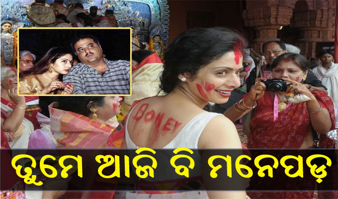 ପ୍ରଯୋଜକ ବୋନି ଶେୟାର କରିଥିବା ଫଟୋଟି ୨୦୧୨ର ଦୂର୍ଗା ପୂଜା ସମୟର। ଲକ୍ଷ୍ନୌରେ ଏହି ଉତ୍ସବ ପାଳନ କରୁଥିବା ବେଳେ ଶ୍ରୀଦେବୀ ଶାଢ଼ି ପିନ୍ଧିଛନ୍ତି। ସେ ନିଜ ଗାଲ ଏବଂ ମୁଣ୍ଡରେ ସିନ୍ଦୁର ଲଗାଇଛନ୍ତି। ତାଙ୍କ ପିଠିରେ ସିନ୍ଦୁରରେ ବୋନି ଲେଖାଯାଇଥିବା ଦେଖାଯାଉଛି।