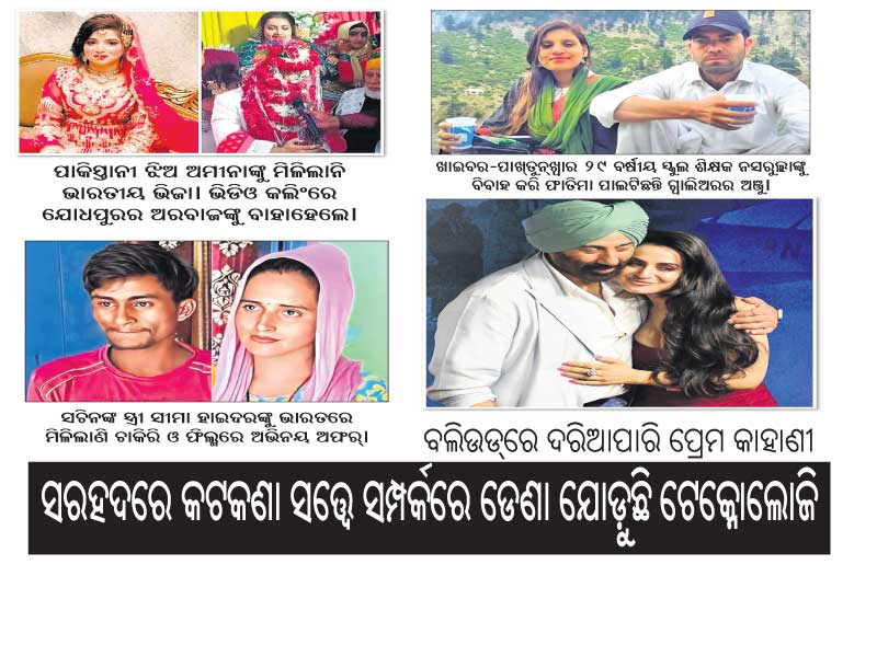 ପାକିସ୍ତାନର ସୀମା ହାଇଦର ନୋଏଡାର ପବ୍ଜି ବନ୍ଧୁ ସଚିନ ମୀନାଙ୍କୁ ବିବାହ କରିବା ପାଇଁ ନିଜ ୪ ପିଲାଙ୍କ ସହ ଭାରତରେ ପ୍ରବେଶ କରିବା ପରଠୁ ସୀମାପାର ପ୍ରେମକୁ ନେଇ ଚର୍ଚ୍ଚା ବଢ଼ିବାରେ ଲାଗିଛି। ଏଭଳି ଲଗାମବିହୀନ ପ୍ରେମର ନୂଆ କାହାଣୀ ପ୍ରତ୍ୟହ ଶୁଣିବାକୁ ମିଳୁଛି। ବିଶେଷକରି ସାମାଜିକ ଗଣମାଧ୍ୟମ ଏପରି ସମ୍ପର୍କର ଜରିଆ ପାଲଟିଛି, ଯାହାର ସଦ୍ୟ ଦୃଷ୍ଟାନ୍ତ ସାଜିଛି ଆଉ ଜଣେ ପାକିସ୍ତାନୀ ମହିଳା ଓ ଭାରତୀୟଙ୍କ ଅନ୍ଲାଇନ୍ ବିବାହ। କରାଚୀର ଅମୀନା ଭିଜା ନ ପାଇବାରୁ ରାଜସ୍ଥାନର ଯୋଧପୁର ବାସିନ୍ଦା ଅରବାଜ ଖାନ୍ଙ୍କୁ ଅନ୍ଲାଇନ ବିବାହ କରିଛନ୍ତି।