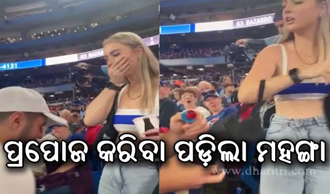 ଅନେକ ଭିଡିଓ ସୋସିଆଲ ମିଡିଆରେ ଭାଇରାଲ ହୋଇଥାଏ। ସେଥିମଧ୍ୟରୁ କିଛି ଭିଡିଓକୁ ବାରମ୍ବାର ଦେଖିବାକୁ ଇଚ୍ଛା ହୁଏ। ଏବେ ସେମିତି ଏକ ଭିଡିଓ ଭାଇରାଲ ହେବାରେ ଲାଗିଛି। ଭାଇରାଲ ଭିଡିଓରେ ଜଣେ ଯୁବକ ଦର୍ଶକ ଭର୍ତ୍ତି ହୋଇଥିବା ଷ୍ଟାଡିୟମରେ ଜଣେ ଯୁବତୀଙ୍କୁ ପ୍ରେମ ନିବେଦନ କରିଥିଲେ। ଏହା ପରେ ଯାହା ଘଟିଲା, ଜାଣିଲେ ଆଶ୍ଚର୍ଯ୍ୟ ହେବେ।