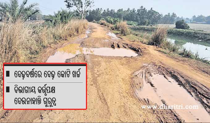 ସାମାଜିକ କର୍ମୀ ଆଲୋକ ଧଳ, ମିଟୁ ଧଳ, ପ୍ରବୀର ନାୟକ, ସୁଶାନ୍ତ ଜେନା ପ୍ରମୁଖ କହିଛନ୍ତି, କେନ୍ଦ୍ରାପଡ଼ା ଜଳସମ୍ପଦ ଡିଭିଜନ ଅନ୍ତର୍ଗତ ପଟ୍ଟାମୁଣ୍ଡାଇ ବାଇପାସ ପାଖରୁ ଇନ୍ଦୁପୁର ମଧ୍ୟରେ କୋଟିଏରୁ ଊର୍ଦ୍ଧ୍ୱ ଟଙ୍କାର କାମ ହୋଇଛି। ମାତ୍ର ବିଭାଗୀୟ ଅଧିକାରୀ ବେଫିକର ମନୋଭାବ ଯୋଗୁ ରାସ୍ତାର ଚାରିଆଡ଼େ ପିଚୁ ଉଠି ଖାଲ ସୃଷ୍ଟି ହୋଇ ଯାତାୟାତରେ ବାଧା ଉପୁଜୁଛି। ପଟ୍ଟାମୁଣ୍ଡାଇ ବ୍ରାହ୍ମଣୀ ଘେରିବନ୍ଧ ମରାମତି କାର୍ଯ୍ୟ ପାଇଁ ଜଳସମ୍ପଦ ବିଭାଗ ପକ୍ଷରୁ ୨୦୨୨ ଡିସେମ୍ବରରେ ପ୍ରଥମ ପର୍ଯ୍ୟାୟରେ ନୀଳକଣ୍ଠପୁର ପାଖରୁ ପଟ୍ଟାମୁଣ୍ଡାଇ ବାଇପାସ୍ ପର୍ଯ୍ୟନ୍ତ ୩ କିମି ଲାଗି ୧୯ ଲକ୍ଷ ପରେ ଦୁଇଟି ପର୍ଯ୍ୟାୟରେ ୪୮ ଲକ୍ଷ ୯୪ ହଜାର ଟଙ୍କା ମଞ୍ଜୁର ହୋଇ କାର୍ଯ୍ୟ ହୋଇଥିଲା। ସେହିପରି ୨୦୨୩ ମାର୍ଚ୍ଚରୁ ମେ’ ଭିତରେ ପଟ୍ଟାମୁଣ୍ଡାଇ ବାଇପାସ୍ ପାଖରୁ କୈଳାସି ପୋଲ ପଛକୁ ୯ ଶହ ମିଟର କାର୍ଯ୍ୟ ପାଇଁ ୨୬ ଲକ୍ଷ ଓ କୈଳାସି ପୋଲରୁ ନୀଳକଣ୍ଠପୁର ପର୍ଯ୍ୟନ୍ତ ୧୫ ଶହ ମିଟର କାମ ପାଇଁ ୫୫ ଲକ୍ଷ ବ୍ୟୟ ଅଟକଳରେ ଖାଲଖମା ମରାମତି ହୋଇଥିଲା। ମାତ୍ର ନିର୍ମାଣ ସରିବାର ୬ ମାସ ଭିତରେ ରାସ୍ତାରୁ ପିଚୁ ଉଠି ପଡୁଥିବା ବେଳେ ଏବେ ସମ୍ପୂର୍ଣ୍ଣ ରାସ୍ତାରେ ଆଣ୍ଠୁଏ ଲେଖାଏ ଖାଲ ସୃଷ୍ଟି ହୋଇଛି। ଏହାଦ୍ୱାରା ୬ ପଞ୍ଚାୟତର ୨୫ ହଜାର ଲୋକ ହନ୍ତସନ୍ତ ହେଉଛନ୍ତି। ଏହି କାମ ଅତି ନିମ୍ନମାନର କରାଯାଇ ଅର୍ଥ ହରିଲୁଟ କରାଯାଉଛି ବୋଲି ସାଧାରଣରେ ଅସନ୍ତୋଷ ପ୍ରକାଶ ପାଇଛି। ବୁଦ୍ଧିଜୀବୀ ପ୍ରମୋଦ ଜେନା କହିଛନ୍ତି, ବ୍ରାହ୍ମଣୀ ଘେରି ବନ୍ଧ ପଟ୍ଟାମୁଣ୍ଡାଇ ବାଇପାସ୍ଠାରୁ ଇନ୍ଦୁପୁର ପର୍ଯ୍ୟନ୍ତ ଖାଲଖମାରେ ପରିଣତ ହୋଇ ଯାତାୟାତରେ ବାଧା ସୃଷ୍ଟି ହେଉଥିଲା। ଏହାର ମରାମତି ପାଇଁ ସାଧାରଣରେ ଦାବି ହୋଇ ଆସୁଥିଲା। ବିଭାଗୀୟ ଉଚ୍ଚ କର୍ତ୍ତୃପକ୍ଷ ଏହି ରାସ୍ତାର ମରାମତି ପାଇଁ ୪ଟି ପର୍ଯ୍ୟାୟରେ ୧ କୋଟି ୪୮ ଲକ୍ଷ ୯୪ ହଜାର ଟଙ୍କା ମଞ୍ଜୁର କରିଥିଲେ। ଏହି କାର୍ଯ୍ୟ କରିବାକୁ ଠିକାଦାରଙ୍କୁ ଟେଣ୍ଡର ମାଧ୍ୟମରେ କାର୍ଯ୍ୟଦେଶ ପ୍ରଦାନ କରାଯାଇଥିଲା। ମାତ୍ର ଠିକାଦାର ନାମକୁମାତ୍ର ନିମ୍ନମାନର କାମ କରି ସାରି ଦେଇଥିଲେ। ଏବେ ରାସ୍ତାରେ ଆଣ୍ଠୁଏ ଲେଖାଏ ଖାଲ ସୃଷ୍ଟି ହୋଇଛି। ୨ବର୍ଷ ଧରି ଏହି ରାସ୍ତା ମରଣଯନ୍ତା ପାଲଟିଥିବା ବେଳେ ପ୍ରତିଦିନ ଛୋଟ ବଡ଼ ଦୁର୍ଘଟଣା ଘଟି ଲୋକେ ଖଣ୍ଡିଆ ଖାବରା ହେଉଛନ୍ତି। ନୀଳକଣ୍ଠପୁର, ହାଟପାଟଣା, ନୂଆପାଟଣା, ଚନ୍ଦନପୁର ସମେତ ପଟ୍ଟାମୁଣ୍ଡାଇ ଧୋୟାଞ୍ଚଳର ୬ଟି ପଞ୍ଚାୟତର ଦୈନିକ ୨୫ହଜାରରୁ ଊର୍ଦ୍ଧ୍ୱ ଲୋକ ନିର୍ଭର କରୁଥିବା ବେଳେ ଏହି ରାସ୍ତାକୁ ଜଳସମ୍ପଦ ବିଭାଗ ଉପରଠାଉରିଆ ଭାବେ ମରାମତି କରିବା ଅଭିଯୋଗ ହେଉଛି। ଏ ସମ୍ପର୍କରେ ସହ ନିର୍ବାହୀ ଯନ୍ତ୍ରୀ ପ୍ରଭାତ ସାହୁଙ୍କୁ ପଚାରିବାରେ ଏହି ରାସ୍ତା ଦେଇ ଦୈନିକ ଶହଶହ ହାଇଓ୍ବା, ଟ୍ରକ୍ ଚଳପ୍ରଚଳ କରିବା ଦ୍ୱାରା ରାସ୍ତା ଖରାପ ହୋଇଯାଉଛି। ଜନସାଧାରଣ ଏହି ଘେରିବନ୍ଧ ଦେଇ ଯାଉଥିବା ଭାରିଯାନ ବନ୍ଦ କରାଇଲେ ରାସ୍ତା ଭଲ ରୁହନ୍ତା ବୋଲି ସେ କହିଛନ୍ତି।