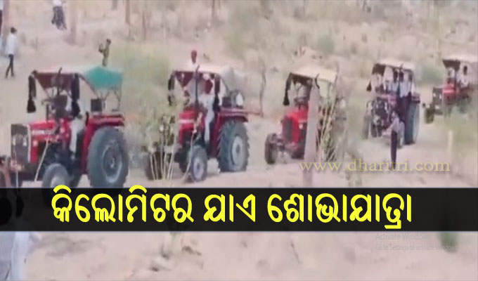 ଆଜିକାଲି ବିବାହରେ କିଛି ଅଲଗା କରିବା ଏକ ଟ୍ରେଣ୍ଡରେ ପରିଣତ ହୋଇଛି। ବର-କନ୍ୟାଙ୍କଠାରୁ ଆରମ୍ଭ କରି ବିବାହ ଶୋଭାଯାତ୍ରା ପର୍ଯ୍ୟନ୍ତ ସବୁକିଛି ଅଲଗା କରିବାକୁ ଚେଷ୍ଟା କରାଯାଉଛି। ଏହି କ୍ରମରେ ରାଜସ୍ଥାନର ଏକ ବିବାହର ଭିଡିଓ ଭାଇରାଲ ହେଉଛି। ଭିଡିଓରେ ବର କୌଣସି କାର୍ କି ବସ୍ ନୁହେଁ ବରଂ ୫୧ ଟ୍ରାକ୍ଟରରେ ୧୫୦ବରଯାତ୍ରୀ ନେଇ କନ୍ୟା ଘରେ ପହଞ୍ଚିଥିଲେ। ଏପରିକି ବର ନିଜେ ଟ୍ରାକ୍ଟର ଚଳାଇଥିଲେ। ଦୀର୍ଘ ୧ କିମି ଯାଏ ଏହି ବିବାହ ଶୋଭାଯାତ୍ରା ବ୍ୟାପିଥିଲା। ଏହି ଦୃଶ୍ୟକୁ ଅନେକ ନିଜ ମୋବାଇଲରେ କଏଦ କରିଥିଲେ।