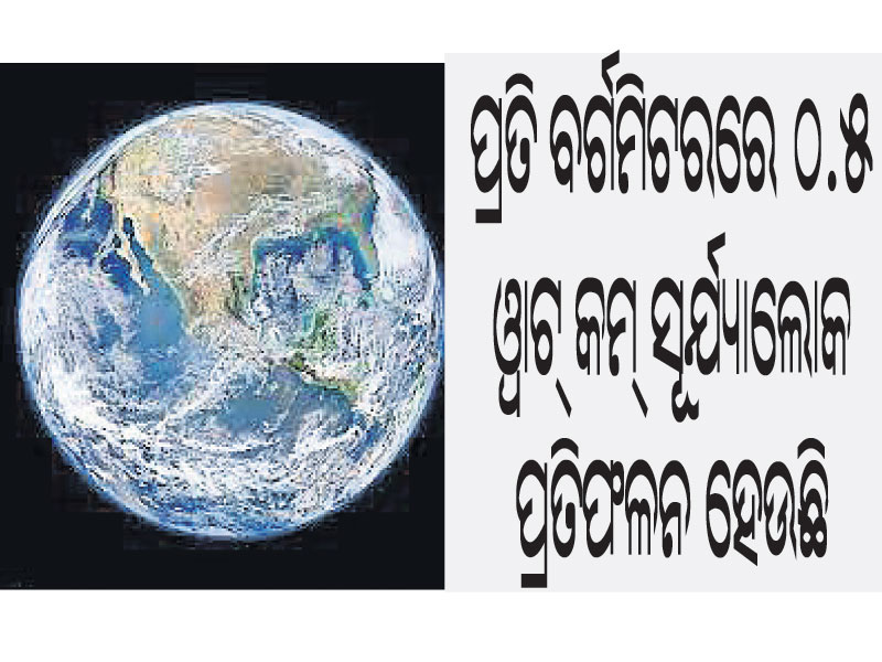 ଓ୍ବାଶିଂଟନ, ୨।୧୦(ପି.ଟି.): ଜଳବାୟୁ ପରିବର୍ତ୍ତନ ଯୋଗୁ ସମୁଦ୍ର ଜଳର ଉତ୍ତାପ ବଢ଼ିବା ଫଳରେ ପୃଥିବୀର ଉଜ୍ଜ୍ୱଳତା ହ୍ରାସ ପାଉଥିବା ଏକ ଅଧ୍ୟୟନରୁ ଜଣାପଡ଼ିଛି। ୨୦ ବର୍ଷ ପୂର୍ବେ ପୃଥିବୀ ପ୍ରତି ବର୍ଗମିଟରରେ ଯେତିକି ଆଲୋକ ପ୍ରତିଫଳନ କରୁଥିଲା ଏବେ ତା’ଠାରୁ ଅଧା ଓ୍ବାଟ୍ କମ୍ କରୁଛି। ପୃଥିବୀ ପ୍ରତିଫଳନ କରୁଥିବା ସୂର୍ଯ୍ୟାଲୋକରେ ଚନ୍ଦ୍ର ଆଲୋକିତ ହୋଇଥାଏ। ଦୀର୍ଘ ଦଶନ୍ଧି ହେଲା ଗବେଷକମାନେ ପୃଥିବୀର ଉଜ୍ଜ୍ୱଳତାକୁ ମାପି ଆସୁଛନ୍ତି। ଉକ୍ତ ଅଧ୍ୟୟନ ଜିଓଫିଜିକାଲ ରିସର୍ଚ୍ଚ ଲେଟରସ୍ ନାମକ ପତ୍ରିକାରେ ପ୍ରକାଶ ପାଇଛି। ଚନ୍ଦ୍ର ପୃଷ୍ଠରେ ପଡ଼ୁଥିବା ପୃଥିବୀର ଆଲୋକକୁ ମଧ୍ୟ ଗବେଷକମାନେ ମାପିଛନ୍ତି। ଦୁଇ ଦଶନ୍ଧି ହେଲା ଆମ ଗ୍ରହର ପ୍ରତିଫଳନ କ୍ଷମତା ହ୍ରାସ ପାଉଥିବା ସେଥିରୁ ଜଣାପଡ଼ିଛି। ଗବେଷକଙ୍କ ମତରେ ପୃଥିବୀର ପ୍ରତିଫଳନ କ୍ଷମତା ୦.୫ ପ୍ରତିଶତ ହ୍ରାସ ପାଇଛି। ପୃଥିବୀ ପୃଷ୍ଠରେ ପଡ଼ୁଥିବା ସୂର୍ଯ୍ୟାଲୋକର ପ୍ରାୟ ୩୦ ପ୍ରତିଶତ ପ୍ରତିଫଳିତ ହୋଇଥାଏ।