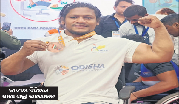 ଭୁବନେଶ୍ୱର, ୨୮।୩ (କ୍ରୀଡ଼ା ପ୍ରତିନିଧି): ନୂଆଦିଲ୍ଲୀରେ ଚାଲିଥିବା ୨୦ତମ ଜାତୀୟ ସିନିୟର ପାରା ଶକ୍ତି ଉତ୍ତୋଳନ ପ୍ରତିଯୋଗିତାରେ ଓଡ଼ିଶାର ଗଦାଧର ସାହୁ ବ୍ରୋଞ୍ଜ ପଦକ ହାସଲ କରିଛନ୍ତି। ୫୯ କେଜି ବର୍ଗରେ ସେ ୧୩୫ କେଜି ଶକ୍ତି ଉତ୍ତୋଳନ କରି ବ୍ରୋଞ୍ଜ ପାଇଛନ୍ତି। ଦିଲ୍ଲୀର ବିନୋଦ ଠାକୁର ୧୬୦ କେଜି ଉଠାଇ ସ୍ବର୍ଣ୍ଣ ଏବଂ କେରଳର ଯୋବି ମାଥ୍ୟୁ ୧୫୦ କେଜି ସହ ରୌପ୍ୟ ପଦକ ହାସଲ କରିଛନ୍ତି। ୨୮ ତାରିଖରେ ଉଦ୍‌ଯାପିତ ହେବାକୁଥିବା ଏହି ପ୍ରତିଯୋଗିତାରେ ଓଡ଼ିଶାର ଅନ୍ୟତମ ପ୍ରତିଯୋଗୀ ଚନ୍ଦନ କୁମାର ବେହେରା ୯୭ କେଜି ବର୍ଗରେ ପ୍ରତିନିଧିତ୍ୱ କରିବେ।