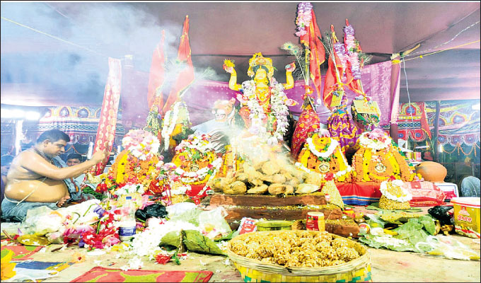 ବୁଗୁଡ଼ା,୧୩।୫(ଡି.ଏନ.ଏ.):ଚଳିତ ଏପ୍ରିଲ ୨୬ ତାରିଖରୁ ଶୁଭାରମ୍ଭ ହୋଇଥିବା ସପ୍ତଦଶ ଦିବସୀୟ ବୁଗୁଡ଼ା ପଞ୍ଚ ଠାକୁରାଣୀ ଯାତ୍ରା ଶୁକ୍ରବାର ଉଦ୍ଯାପିତ ହୋଇଯାଇଛି। ଶ୍ରଦ୍ଧାଳୁଙ୍କ ଠାରୁ ମେଲାଣି ନେଇ ପଞ୍ଚ ଠାକୁରାଣୀ ସ୍ବ ସ୍ବ ମନ୍ଦିରକୁ ପ୍ର୍ଯଯାବର୍ତ୍ତନ କରିଥିବା ବେଳେ ଅନ୍ତିମ ନଗର ଭ୍ରମଣି ସହ ରାବଣ ପୋଡି କାର୍ଯ୍ୟକ୍ରମ ମହାସମାରୋହରେ ଅନୁଷ୍ଠିତ ହୋଇଯାଇଛି । ଶେଷ ପଞ୍ଚ ଠାକୁରାଣୀ ଯାତ୍ରା କମିଟି ସଭାପତି ଶ୍ରୀକାନ୍ତ ସାହୁଙ୍କ ପକ୍ଷରୁ ଆୟୋଜିତ ହୋଇଥିବା ବେଳେ ପୂର୍ବାହ୍ନରେ ସ୍ଥାନୀୟ ବଡଦାଣ୍ଡସ୍ଥିତ ଅସ୍ଥାୟୀ ପୂଜା ମଣ୍ଡପରେ ପାରମ୍ପରିକ ରୀତିନୀତି ପ୍ରକାରେ ମା’ଙ୍କ ପୂଜାର୍ଚ୍ଚନା ଓ ହୋମ କାର୍ଯ୍ୟ ସମ୍ପନ୍ନ ହୋଇଥିଲା। ସନ୍ଧ୍ୟାରେ ୧୦୮ ଆଳତି , ପୂର୍ଣ୍ଣାହୁତି, ସଙ୍କୁଡି ଭୋଗ ଏବଂ ପୁଷ୍ପାଞ୍ଜଳି ପରେ ମା’ ଦୁର୍ଗାଙ୍କ ମୃଣ୍ମୟ ମୂର୍ତ୍ତି ସହ ମାନସିକଧାରୀ ମହିଳା ଆରତୀ ବେହେରା, ଏସ୍ ମନୋଜା ରାଣୀ ପାତ୍ର, କୁନି ସାହୁ, କେ.ଶୁଭଶ୍ରୀ ପାତ୍ର. ସୁଷମା ସାହୁ ପ୍ରମୁଖ ପଞ୍ଚ ଠାକୁରାଣୀଙ୍କ ଘଟ ଧାରଣ କରି ବଳଦେବ ମନ୍ଦିର, ଥାନା ରୋଡ, ରାବଣ ପୋଡି ସ୍ଥଳ, ହାଇସ୍କୁଲ ଛକ, ମଦନ ମୋହନ ଛକ, ପୋଲସରା ରୋଡ, ନୂଆଁ ସାହି ଆଦି ପରିକ୍ରମା ପରେ ନେଳିଆ ବନ୍ଧ ତୁଠରେ ପହଞ୍ଚିଥିଲେ। ସେଠାରେ ଯଥା ବିଧି ପ୍ରକାରେ ପୂଜାର୍ଚ୍ଚନା ପରେ ପଞ୍ଚ ଠାକୁରାଣୀ ନିଜ ନିଜର ମନ୍ଦିରକୁ ପ୍ରତ୍ୟାବର୍ତ୍ତନ କରିଥିଲେ।