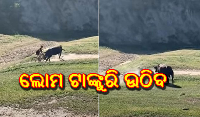 ପ୍ରତ୍ୟେକ ଦିନ ସୋସିଆଲ ମିଡିଆରେ କିଛି ନା କିଛି ନୂତନ ଭିଡିଓ ଏବଂ ଫଟୋ ଭାଇରାଲ ହେଉଛି। ସେଥିରୁ କେତେକ ଭିଡିଓ ଏବଂ ଫଟୋ ହସର ଖୋରାକ ଯୋଗାଉଥିବା ବେଳେ କେତେକ ଭାବପ୍ରବଣ କରିଦିଏ। ସେହିଭଳି ଟୁଇଟରରେ ଏବେ ଏକ ଭିଡିଓ ଭାଇରାଲ ହେବାରେ ଲାଗିଛି। କୁହାଯାଏ କିଛି ପଶୁଠାରୁ ଦୂରରେ ରହିବା ଭଲ । ବିଶେଷକରି ମଣିଷ କ୍ରୋଧିତ ପଶୁମାନଙ୍କଠାରୁ ଦୂରରେ ରହିବା ଉଚିତ୍। ଭିଡିଓରେ ଜଣେ ବ୍ୟକ୍ତି କ୍ରୋଧିତ ଷଣ୍ଢର ସାମ୍ନାକୁ ଆସିଯାଇଛନ୍ତି। ପରେ, ତାଙ୍କ ସହିତ ଯାହା ହୁଏ ଆପଣ ମଧ୍ୟ ଆଶ୍ଚର୍ଯ୍ୟ ହୋଇଯିବେ। ଆମେରିକାର କାଲିଫର୍ନିଆରେ ଏକ ସାଇକେଲ ଦୌଡ଼ ଚାଲିଥିଲା । ଏହି ସମୟରେ ସାଇକେଲ ଚାଳକଙ୍କ ସାମ୍ନାକୁ ଏକ ଷଣ୍ଢ ଆସିଗଲା। ସେହି ସମୟରେ ଷଣ୍ଢଟି ରାଗିକି ଥିଲା । ପରେ ସାଇକେଲ ଚାଳକଙ୍କ ଯାହା ଅବସ୍ଥା ହେଲା ତାହା ଭିଡିଓରେ ଦେଖି ପାରିବେ। ଷଣ୍ଢଟି ଦୁଇ ଦୁଇ ଥର ସାଇକେଲ ଚାଳକଙ୍କ ଉପରକୁ ଆକ୍ରମଣ କଲା ଏହା ସହ ତାଙ୍କୁ ଟେକି କଚାଡି ଦେଲା। ଯାହାକୁ ଦେଖିଲେ ଲୋମ ଟାଙ୍କୁରି ଉଠିବ।