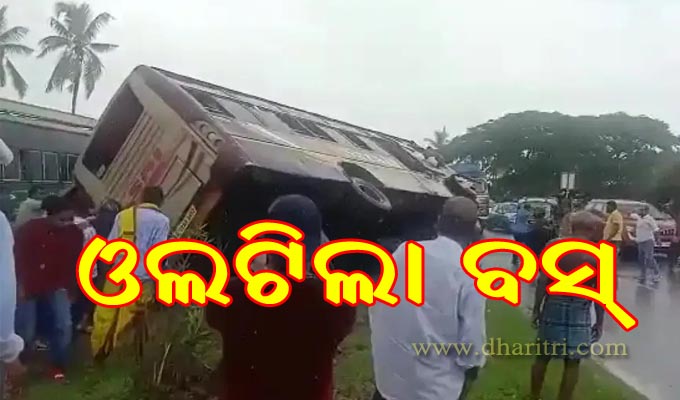 ପୁରୀ ଅଫିସ,୧୧ା୭: ପୁରୀରୁ ଭୁବନେଶ୍ୱର ଆସୁଥିବା ‘ଶାରଳା’ ନାମକ ଏକ ବସ୍ ସୋମବାର ଦୁର୍ଘଟଣାଗ୍ରସ୍ତ ହୋଇଛି। ଭାରସାମ୍ୟ ହରାଇ ବସ୍ଟି ସାତଶଙ୍ଖ ନିକଟ ଡିଭାଇଡରରେ ପିଟି ହୋଇ ଓଲଟି ପଡ଼ିଥିଲା। ବର୍ଷା ଯୋଗୁ ବସ୍ଟି ଭାରସାମ୍ୟ ହରାଇଥିଲା। ଏହି ବସ୍ରେ ଥିବା ଯାତ୍ରୀମାନଙ୍କ ମଧ୍ୟରୁ ୫ ଜଣ ଆହତ ହୋଇଛନ୍ତି। ସମସ୍ତ ଆହତଙ୍କୁ ସାତଶଙ୍ଖ ମେଡିକାଲରେ ଭର୍ତ୍ତି କରାଯାଇଛି।