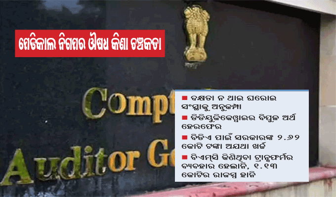 ରିପୋର୍ଟରେ ଉଲ୍ଲେଖ କରାଯାଇଛି ଯେ, ୨୦୧୬ରୁ ୨୦୧୯ ମଧ୍ୟରେ ଓଏସ୍ଏମ୍ସିଏଲ ଦ୍ୱାରା ଔଷଧ, ଚିକିତ୍ସା ସାମଗ୍ରୀ, ଉପକରଣ, ଯନ୍ତ୍ରପାତି ଓ ଆସବାବପତ୍ର ଉପରେ କ୍ରୟ ଚୂଡାନ୍ତ କରିବା ଯୋଗୁ ସରକାରଙ୍କୁ ବହୁ ଟଙ୍କାର ରାଜସ୍ବ ହରାଇବାକୁ ପଡ଼ିଛି। ଓଏସ୍ଏମ୍ସିଏଲ ଏହି ସମୟରେ ବିଭିନ୍ନ ସରକାରୀ ସଂସ୍ଥାକୁ ଅନୁମୋଦିତ ପରିମାଣର ମାତ୍ର ୪୯% ଔଷଧ ଓ ଚିକିତ୍ସା ସାମଗ୍ରୀ ଯୋଗାଇବାରେ ସଫଳ ହୋଇଥିଲା। କମ୍ ଔଷଧ ଯୋଗାଇବାରୁ ସ୍ବାସ୍ଥ୍ୟ ଅନୁଷ୍ଠାନଗୁଡିକ ସ୍ଥାନୀୟ ବଜାରରୁ ଅଧିକ ଦରରେ ଔଷଧ କିଣି ଲୋକଙ୍କୁ ଯୋଗାଇଥିଲେ। ଏଥିଯୋଗୁ ୨୦୧୮-୧୯ରେ ୨.୨୪ କୋଟି ଟଙ୍କାର ଔଷଧ କିଣାଯିବାରୁ ୧୮.୧୨ ଲକ୍ଷ ଟଙ୍କା ଅଧିକ ଖର୍ଚ୍ଚ ହୋଇଥିଲା। ଇ-ନିରାମୟ ସପ୍ଟଓ୍ବେର ମାଧ୍ୟମରେ ଇଣ୍ଡେଣ୍ଟ, ବଣ୍ଟନ, ବ୍ୟବହାର ଓ ଔଷଧ ଷ୍ଟକ୍ ସ୍ଥିତି କରାଯାଇ ନ ପାରିବାରୁ ୨୦୧୭ ଏପ୍ରିଲରୁ ୨୦୧୭ ମେ ମଧ୍ୟରେ ୪.୧୮ କୋଟି ଟଙ୍କାର ଔଷଧ ନଷ୍ଟ ହୋଇଥିଲା। କେବଳ ସ୍ବାସ୍ଥ୍ୟ ବିଭାଗ ନୁହେଁ, ପଞ୍ଚାୟତିରାଜ ଓ ପାନୀୟ ଜଳ ବିଭାଗରେ ମଧ୍ୟ ଅନିୟମିତତା ହୋଇଥିବା ସିଏଜି ତାଙ୍କ ରିପୋର୍ଟରେ ଉଲ୍ଲେଖ କରିଛନ୍ତି।