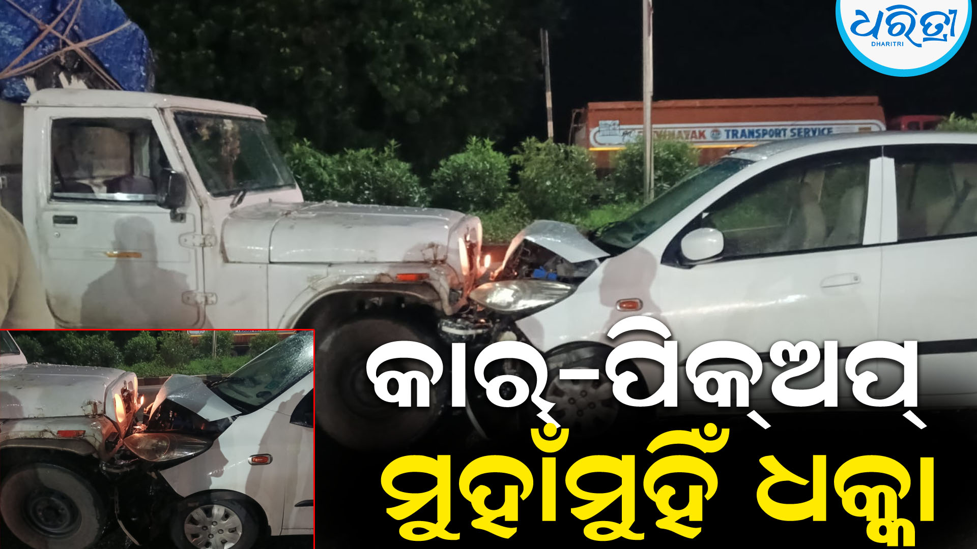 ବରଗଡ଼,୧୪।୭(ପ୍ରେମାନନ୍ଦ ଖମାରୀ): ବରଗଡ଼ ସହର ଉପକଣ୍ଠ ବରାହଗୋଡାସ୍ଥିତ ପଁର୍ରାପାଟ ମନ୍ଦିର ନିକଟରେ ସୋମବାର ରାତି ପ୍ରାୟ ୯ଟା ୩୦ ମିନିଟରେ ଏକ ସଡକ ଦୁର୍ଘଟଣା ଘଟିଛି। କାର୍ ଏବଂ ପିକଅପ ଭ୍ୟାନ ମଧ୍ୟରେ ମୁହାଁମୁହିଁ ଧକ୍କା ହୋଇଛି। ଦୁର୍ଘଟଣାରେ ଜଣେ ଲୋକଙ୍କର ମୃତ୍ୟୁ ହୋଇଛି। ମୃତକଙ୍କ ପରିଚୟ ଜଣାପଡି ନାହିଁ।