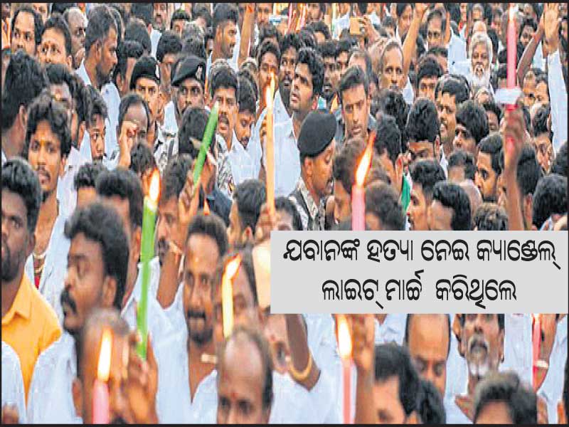 ଚେନ୍ନାଇ, ୨୩।୨: ତାମିଲନାଡ଼ୁରେ ଡିଏମ୍କେ କାଉନ୍ସିଲରଙ୍କ ମାଡ଼ରେ ପ୍ରାଣ ହରାଇଥିବା ଯବାନଙ୍କୁ ନ୍ୟାୟ ପ୍ରଦାନ ଦାବିରେ ବିକ୍ଷୋଭ ପ୍ରଦର୍ଶନ କରିଥିବା ୩,୫୦୦ ଭାଜପା କର୍ମୀଙ୍କ ବିରୋଧରେ ମାମଲା ରୁଜୁ ହୋଇଛି। ଭାଜପା ନେତା ଓ କର୍ମୀ ବିନା ଅନୁମତିରେ କ୍ୟାଣ୍ଡେଲ୍ ଲାଇଟ୍ ମାର୍ଚ୍ଚ କରିଥିବା ଚେନ୍ନାଇର ଜଣେ ପୋଲିସ ଅଫିସର କହିଛନ୍ତି।