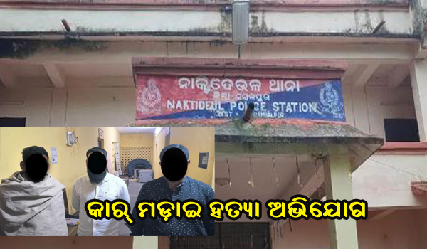 ନାକଟିଦେଉଳ,୮ା୧୨(ବୈକୁଣ୍ଠ ନାଥ ସାହୁ): ସମ୍ବଲପୁର ଜିଲା ନାକଟିଦେଉଳ ଥାନା ଅଧୀନ ଝାରବେଡ଼ା ଗ୍ରାମ ନିକଟ ରାସ୍ତାରେ କାର୍ ଧକ୍କାରେ ଜଣେ ଯୁବକଙ୍କ ମୃତ୍ୟୁ ଘଟଣାରେ ପୋଲିସ ଶୁକ୍ରବାର ଜଣେ ସରପଞ୍ଚଙ୍କ ସମେତ ୩ ଅଭିଯୁକ୍ତଙ୍କୁ ଗିରଫ କରିଛି। ସେମାନେ ହେଲେ ନାକଟିଦେଉଳ ବ୍ଲକ ସାହେବୀ ପଞ୍ଚାୟତ ସରପଞ୍ଚ ରାମପ୍ରସାଦ ସାହୁ (୪୯), ସାହେବୀ ଗ୍ରାମର ବାରୁ ଦେହୁରି (୪୦) ଓ ରେଢାଖୋଲ ସହର ଗଣେଶନଗର ସାହିର ନାରାୟଣ ଦେହୁରି।