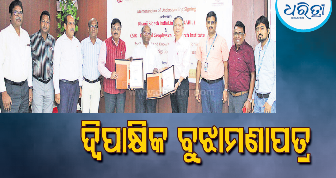 ଭୁବନେଶ୍ୱର,୨୫।୪: କାଉନସିଲ ଅଫ୍ ସାଇଣ୍ଟିଫିକ ଆଣ୍ଡ ଇଣ୍ଡଷ୍ଟ୍ରିଆଲ ରିସର୍ଚ୍ଚ (ସିଏସ୍ଆଇଆର୍)ର ପ୍ରମୁଖ ପ୍ରତିଷ୍ଠାନ ନ୍ୟାଶନାଲ ଜିଓଫିଜିକାଲ୍ ରିସର୍ଚ୍ଚ ଇନ୍ଷ୍ଟିଚ୍ୟୁଟ୍ ବା ଏନ୍ଜିଆର୍ଆଇ ଅଥବା ସିଏସ୍ଆଇଆର୍-ଏନ୍ଜିଆର୍ଆଇ ଏବଂ ଖଣିଜ ବିଦେଶ ଇଣ୍ଡିଆ ଲିମିଟେଡ୍ (କାବିଲ୍) ମଧ୍ୟରେ ଏକ ଦ୍ୱିପାକ୍ଷିକ ବୁଝାମଣାପତ୍ର (ଏମ୍ଓୟୁ)...