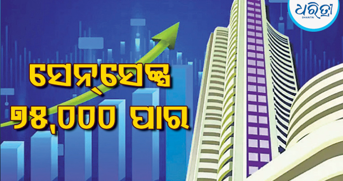 ସର୍ବୋଚ୍ଚସ୍ତରରେ ସେନ୍ସେକ୍ସ, ପ୍ରଥମ ଥର ପାଇଁ ୭୫,୦୦୦ ପାର