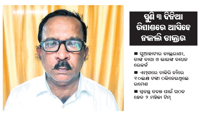 ଭୁବନେଶ୍ୱର,୨୮।୨(ବ୍ୟୁରୋ): ରସିକିଆ ନକଲି ଡାକ୍ତର ରମେଶଚନ୍ଦ୍ର ସ୍ବାଇଁଙ୍କ ପ୍ରତାରଣା ଓ ଠକେଇ ସାମ୍ରାଜ୍ୟକୁ ଭେଦ କରିପାରୁନି କମିଶନରେଟ ପୋଲିସ। ଶୁକ୍ରବାରଠାରୁ ଦ୍ୱିତୀୟଥର ରିମାଣ୍ଡରେ ଆଣି ମାରାଥନ ଜେରା କରିଥିଲେ ମଧ୍ୟ ସେପରି ଅଧିକ କିଛି ତଥ୍ୟ ପାଇପାରି ନାହିଁ ପୋଲିସ।...