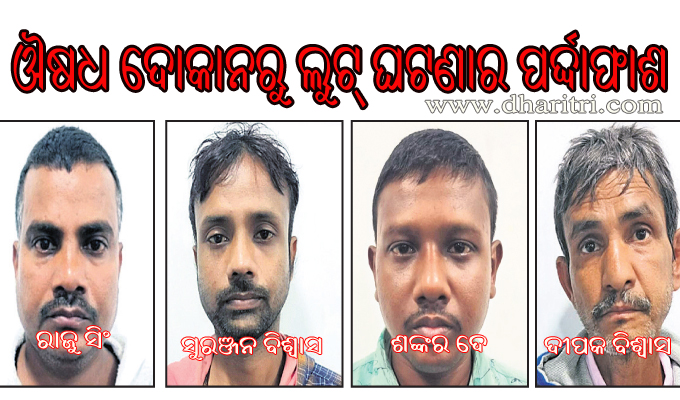 ଭୁବନେଶ୍ୱର,୨୮।୧(ବ୍ୟୁରୋ): ରାଜଧାନୀର ବିଭିନ୍ନ ଔଷଧ ଦୋକାନରୁ ଅଭିନବ ଉପାୟରେ ଟଙ୍କା ଲୁଟ୍ କରୁଥିବା ପଶ୍ଚିମବଙ୍ଗର ଲୁଟେରା ଗ୍ୟାଙ୍ଗକୁ କମିଶନରେଟ ପୋଲିସର ସ୍ପେଶାଲ ସ୍କ୍ବାଡ୍ ଗୁରୁବାର କଟକରୁ ଗିରଫ କରିଛି। ଗିରଫ ଅଭିଯୁକ୍ତମାନେ ହେଲେ ପଶ୍ଚିମବଙ୍ଗ ନଦିଆ ଜିଲା ରାଣାଘାଟ ଥାନା...