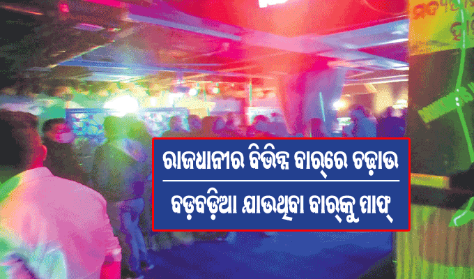 ଭୁବନେଶ୍ୱର,୧୩ା୧୨(ବ୍ୟୁରୋ): ରାଜଧାନୀର ବାର୍ରେ ମଦ ସହ ମଉଜ ଚାଲିଛି। ବିଳମ୍ବିତ ରାତି ପର୍ଯ୍ୟନ୍ତ ନାଚଗୀତଠାରୁ ଆରମ୍ଭ କରି ଚିତ୍ତବିନୋଦନ ପାଇଁ ସବୁକିଛି ମିଳୁଛି। କରୋନା କଟକଣାକୁ ଖୋଲାଖୋଲି ଉଲ୍ଲଂଘନ କରାଯାଉଛି। ଏ ସମ୍ପର୍କରେ ଅଭିଯୋଗ ଆସିବା ପରେ କମିଶନରେଟ ପୋଲିସ...