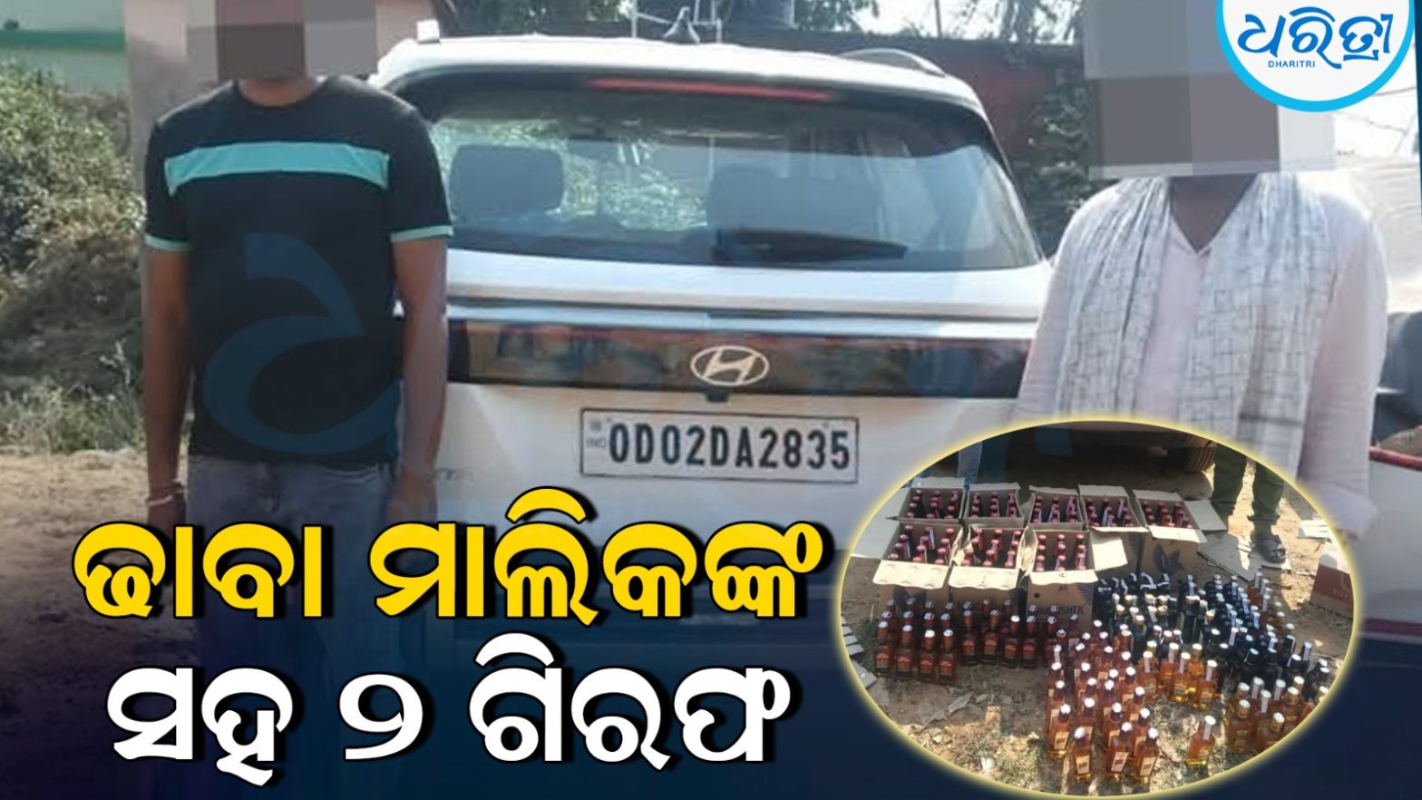 ବିପୁଳ ମଦ ସହ କାର୍ ଜବତ, ଢାବା ମାଲିକଙ୍କ ସମେତ ୨ ଗିରଫ