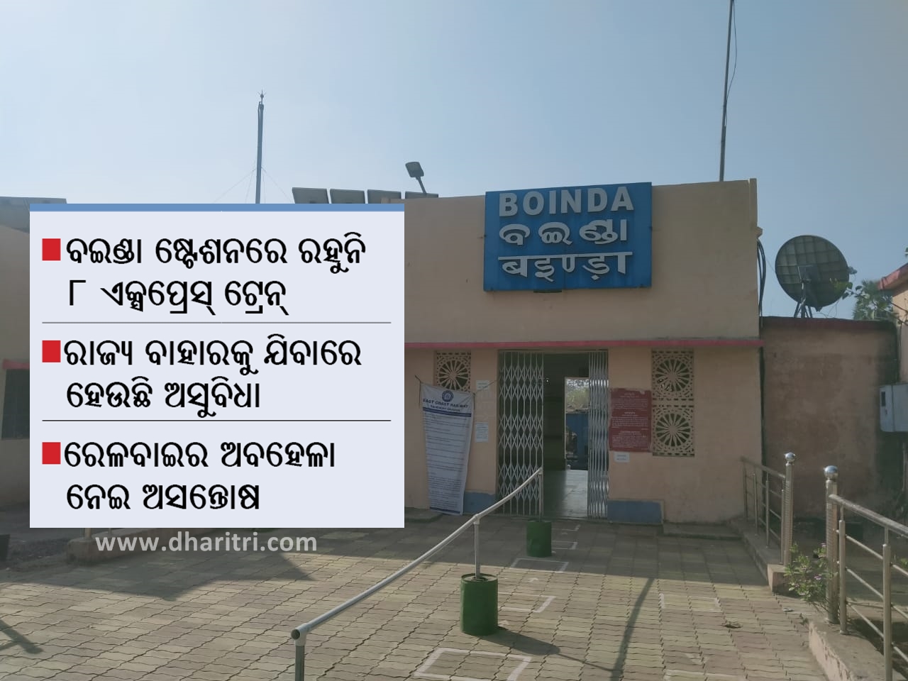 ବଇଣ୍ଡା,୭ା୧୦: କରୋନାକୁ ଆଳ କରି ଯାତ୍ରୀ ପରିବହନରେ ଅବହେଳା କରୁଛି ରେଳବାଇ। ପୂର୍ବାପେକ୍ଷା କମ୍ ଟ୍ରେନ୍ ଚଳାଯାଉଥିବା ବେଳେ ଅନେକର ରହଣିସ୍ଥଳରେ ପରିବର୍ତ୍ତନ କରାଯାଇଛି। ଫଳରେ ରାଜ୍ୟ ବାହାରକୁ ଯାତାୟାତ ପାଇଁ ବଡ଼ ଯାତନା ଭୋଗୁଛନ୍ତି ଅନୁଗୋଳ ଜିଲା ବଇଣ୍ଡା ଷ୍ଟେଶନ...