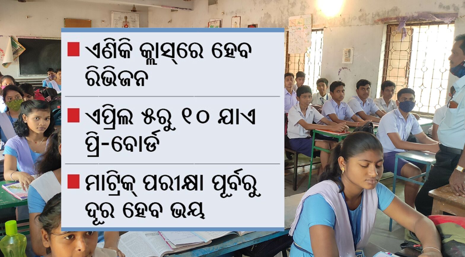 ଅନୁଗୋଳ ଅଫିସ, ୨୫।୩: କରୋନା କଟକଣା ମଧ୍ୟରେ ଆସନ୍ତା ମେ ୩ରେ ହେକବ ମାଟ୍ରିକ ପରୀକ୍ଷା। ଚଳିତବର୍ଷ ଅନୁଗୋଳ ଜିଲାର ୧୮ ହଜାର ୯୯୬ ଛାତ୍ରୀଛାତ୍ର ମାଟ୍ରିକ ପରୀକ୍ଷା ଦେବେ। ତେବେ ୯ ମାସ ଧରି ଅନ୍ଲାଇନ୍ରେ ପଢ଼ିଥିବା ଏହି ଛାତ୍ରୀଛାତ୍ରମାନେ...
