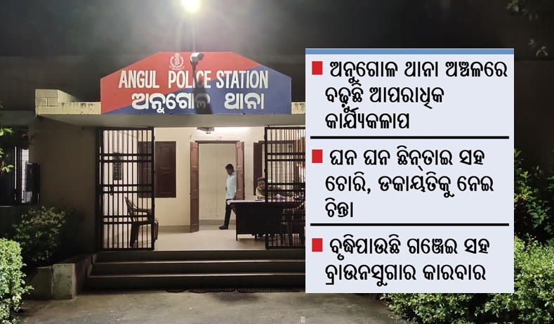 ଅନୁଗୋଳ ଅଫିସ, ୧।୨: ସଦର ଥାନା ଖୋଲାଯିବା ପରେ ଅନୁଗୋଳ ଥାନା ଉପରୁ ଚାପ ହ୍ରାସ ପାଇଛି। କିନ୍ତୁ ସେହି ଅନୁସାରେ ଆପରାଧିକ କାର୍ଯ୍ୟକଳାପ କମୁନାହିଁ। ପାଟ୍ରୋଲିଂ କଡ଼ାକଡ଼ି କରାଯାଉ ନ ଥିବାରୁ ସହରର ବିଭିନ୍ନ ସ୍ଥାନରେ ଅସାମାଜିକମାନେ ଆଡ୍ଡା ଜମାଇବା...