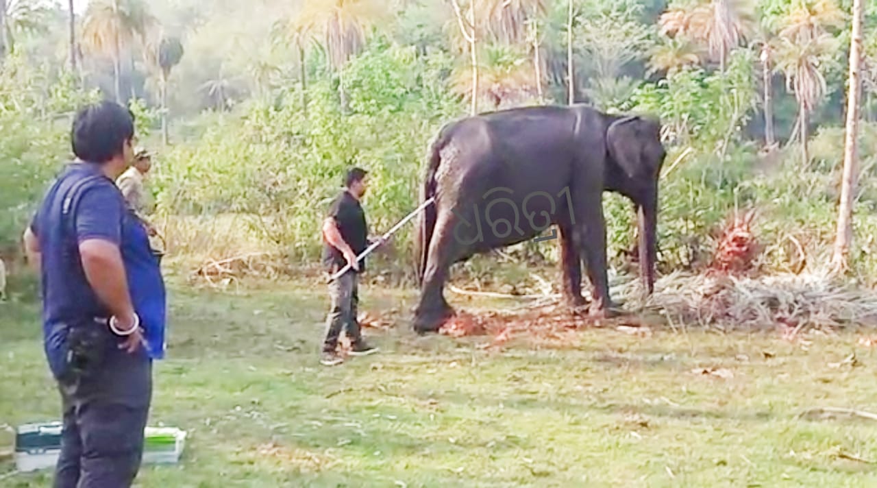 ଛେଣ୍ଡିପଦା,୧୪ା୪(ସ୍ବ.ପ୍ର.)- ଅନୁଗୋଳ ଜିଲା ଜରପଡା ଓ ଅନୁଗୋଳ ବନାଞ୍ଚଳର ସୀମାନ୍ତ ରେଞ୍ଜ ଅଞ୍ଚଳରେ ଅସୁସ୍ଥ ହୋଇ ବୁଲୁଥିବା ଏକ ମାଈ ହାତୀକୁ ସୋମବାର ବନ ବିଭାଗ ପକ୍ଷରୁ ଛୋଟକୋଇଲି ଜଙ୍ଗଲରେ ଟ୍ରାଙ୍କୁଲାଇଜ କରାଯାଇଛି। ଏହା ପରେ ହାତୀର ଚିକିତ୍ସା କରାଯାଇଛି...