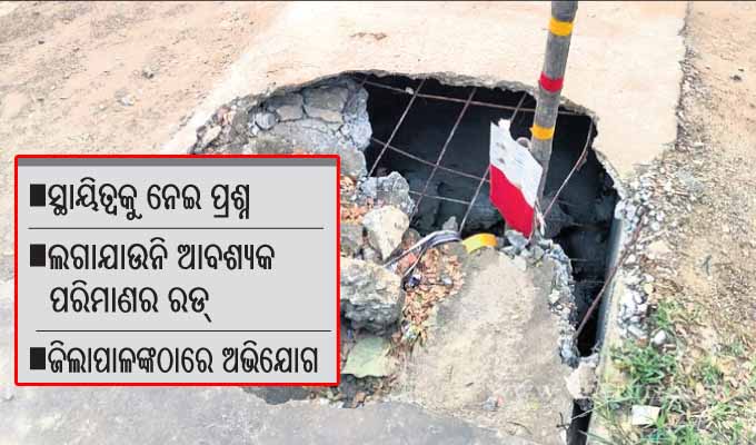 ବଇଣ୍ଡା,୧୬।୧୦(ପରିକ୍ଷିତ ସାହୁ): ଅନୁଗୋଳ ଜିଲା କିଶୋରନଗର ବ୍ଲକ ବଇଣ୍ଡା ଅଞ୍ଚଳରେ ନିର୍ମାଣ କରାଯାଉଥିବା ଡ୍ରେନ୍ ଗୁଡିକ ଅତି ନିମ୍ନମାନର ହେଉଥିବା ଯୋଗୁ ଏବେ ବିଭିନ୍ନ ସ୍ଥାନରେ ଭାଙ୍ଗିଯାଉଛି। ଫଳରେ ଉକ୍ତ ଡ୍ରେନ୍ ଗୁଡିକର ସ୍ଥାୟିତ୍ୱକୁ ନେଇ ପ୍ରଶ୍ନବାଚୀ ସୃଷ୍ଟି ହୋଇଛି।...