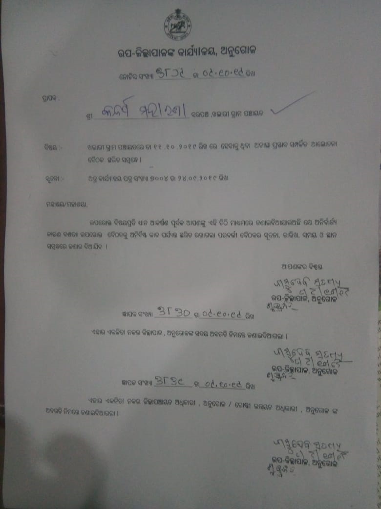 ଅନୁଗୋଳ ଅଫିସ, ୧୧।୧୦-ଅନୁଗୋଳ ବ୍ଲକ ଖଲାରୀ ସରପଞ୍ଚ କନ୍ଦର୍ପ ମହାରଣାଙ୍କ ବିରୋଧରେ ଶୁକ୍ରବାର ହେବାକୁ ଥିବା ଅନାସ୍ଥା ବୈଠକ ସ୍ଥଗିତ ରହିଛି। ଗୁରୁବାର ସନ୍ଧ୍ୟା ୭ଟା ପରେ ବ୍ଲକ ପକ୍ଷରୁ ଏ ନେଇ ପଞ୍ଚାୟତର ସରପଞ୍ଚ, ସଭ୍ୟାସଭ୍ୟଙ୍କୁ ଅବଗତ କରାଯିବା...