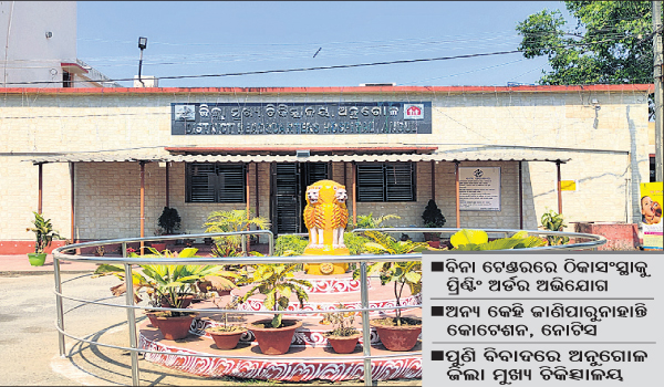 ଅନୁଗୋଳ ଅଫିସ, ୧୩ା୧୨: ଫର୍ମ ହେଉ କିମ୍ବା ବ୍ୟାନର ପ୍ରିଣ୍ଟିଂ, ଟେଣ୍ଡର ମାଧ୍ୟମରେ ହିଁ ଦିଆଯିବା କଥା ଅର୍ଡର। ହେଲେ ଅନୁଗୋଳ ଜିଲା ମୁଖ୍ୟ ଚିକିତ୍ସାଳୟରେ ଏହି ବ୍ୟବସ୍ଥା ଠିକ୍ ଭାବେ କାର୍ଯ୍ୟକାରୀ ହେଉନାହିଁ। କେତେବେଳେ ଏଥିପାଇଁ ଟେଣ୍ଡର, ନୋଟିସ...