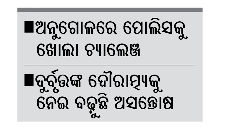 ଅନୁଗୋଳ ଅଫିସ, ୧୬।୫: ରାତିରେ ଦାମୀ ଘର ଦେଖି କରାଯାଉଛି ଟାର୍ଗେଟ୍। ଏପରି କି ଘର ଲୋକ ଥିଲେ ମଧ୍ୟ କୌଶଳ କରି କଳାକନା ବୁଲାଇ ଦେଉଛନ୍ତି ଦୁର୍ବୃତ୍ତ। ସେହିପରି ଦିନରେ ସହର ବଜାରରେ ବୁଲି ଦୁର୍ବୃତ୍ତମାନେ ବ୍ୟାଙ୍କ ଓ...